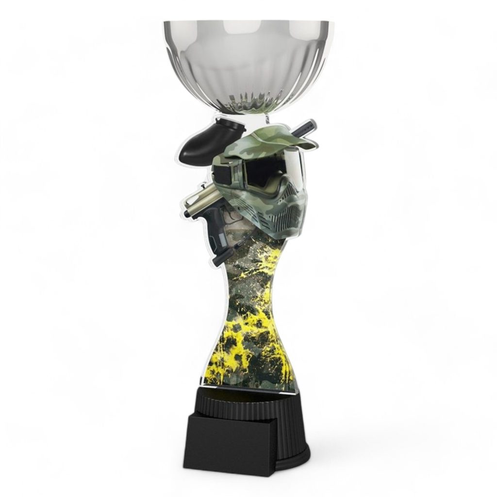 The Montreal Paintball Silver Cup Trophy is a prestigious award that adds grandeur to any event.