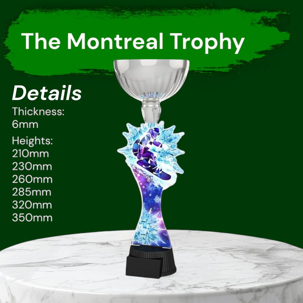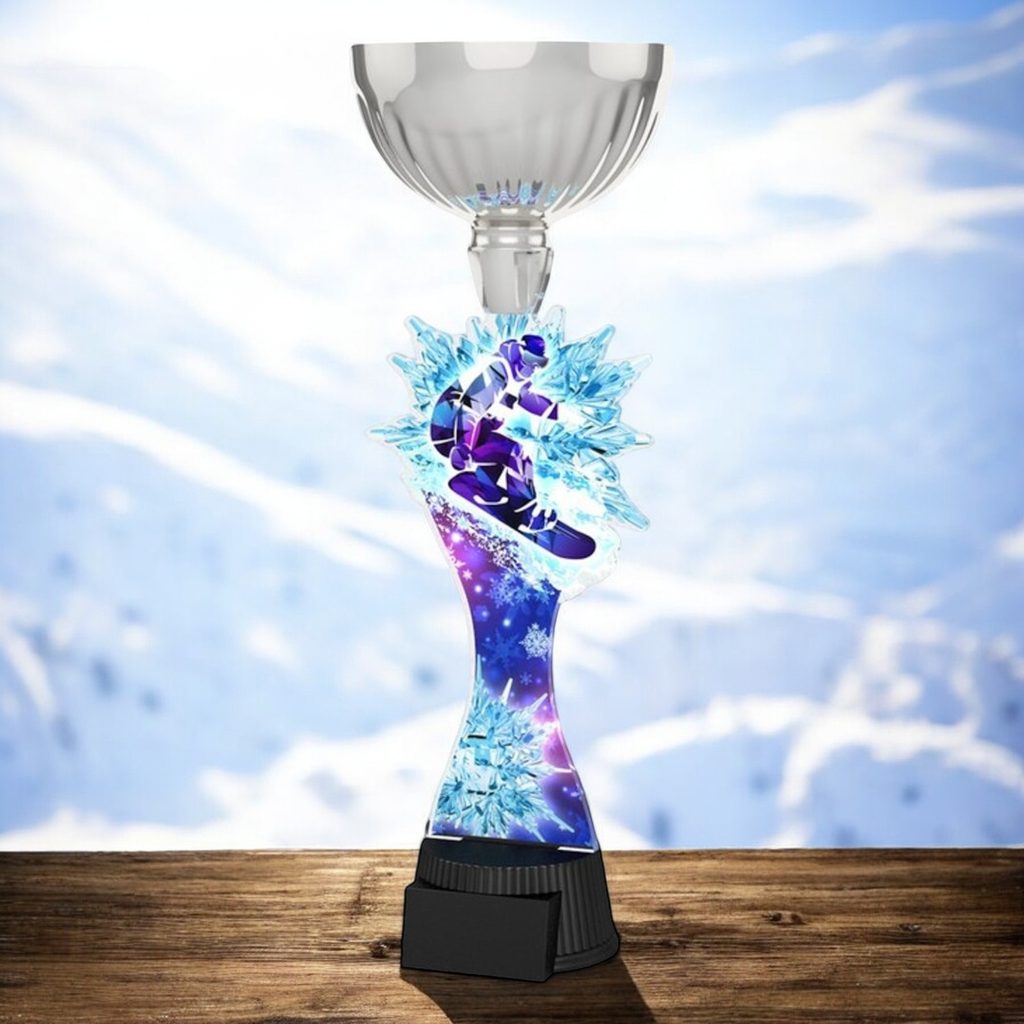 The Montreal Snowboarding Silver Cup Trophy is a prestigious award that adds grandeur to any event.