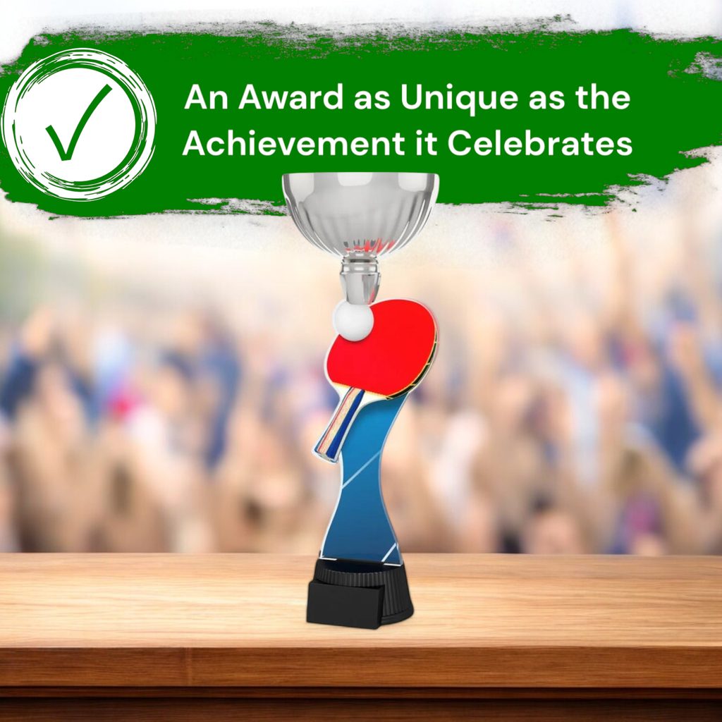 The Montreal Table Tennis Silver Cup Trophy is a prestigious award that adds grandeur to any event.