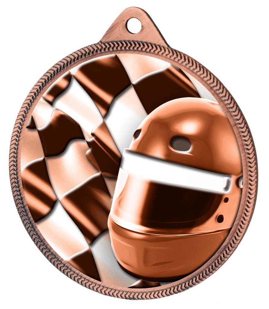 Motorsports Helmet and Flag Classic Texture 3D Print Bronze Medal