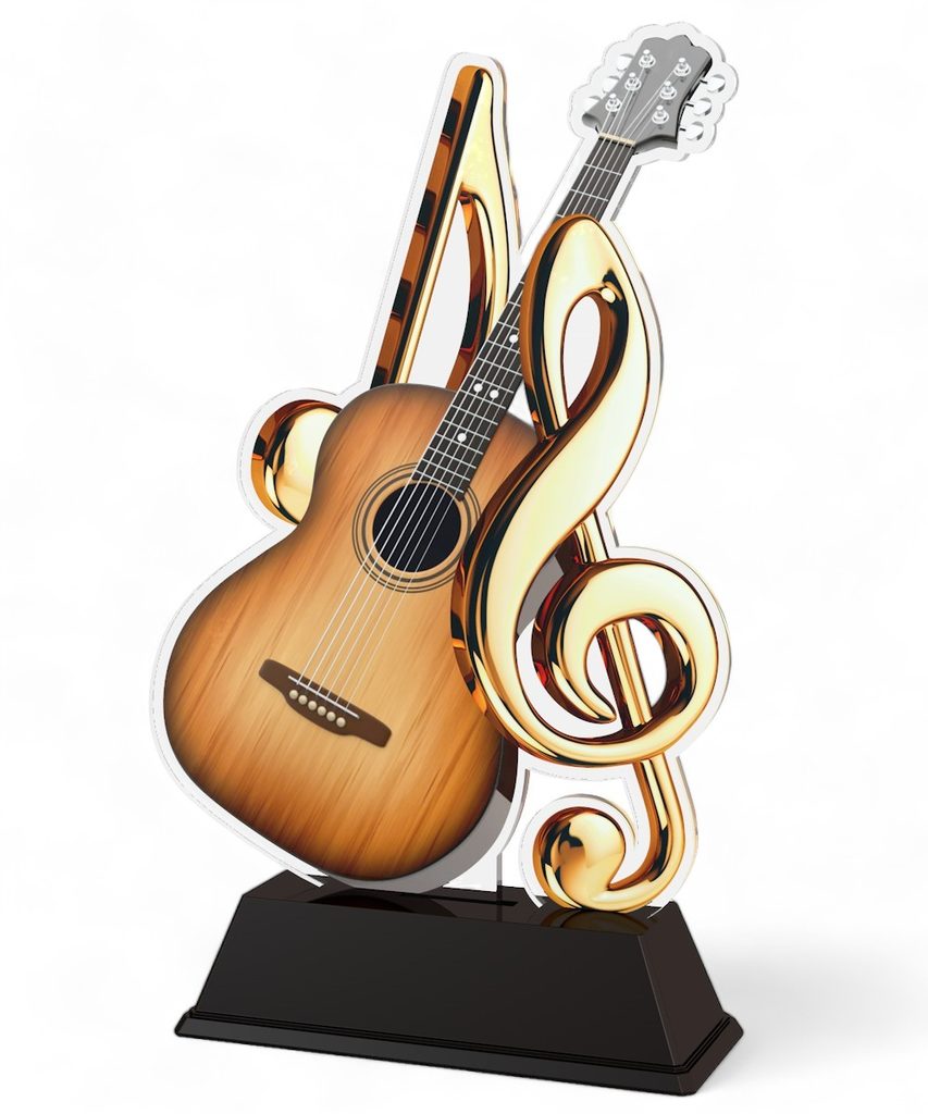 The Ostrava Acoustic Guitar Trophy is a modern and affordable award, offering a sleek and professional look.