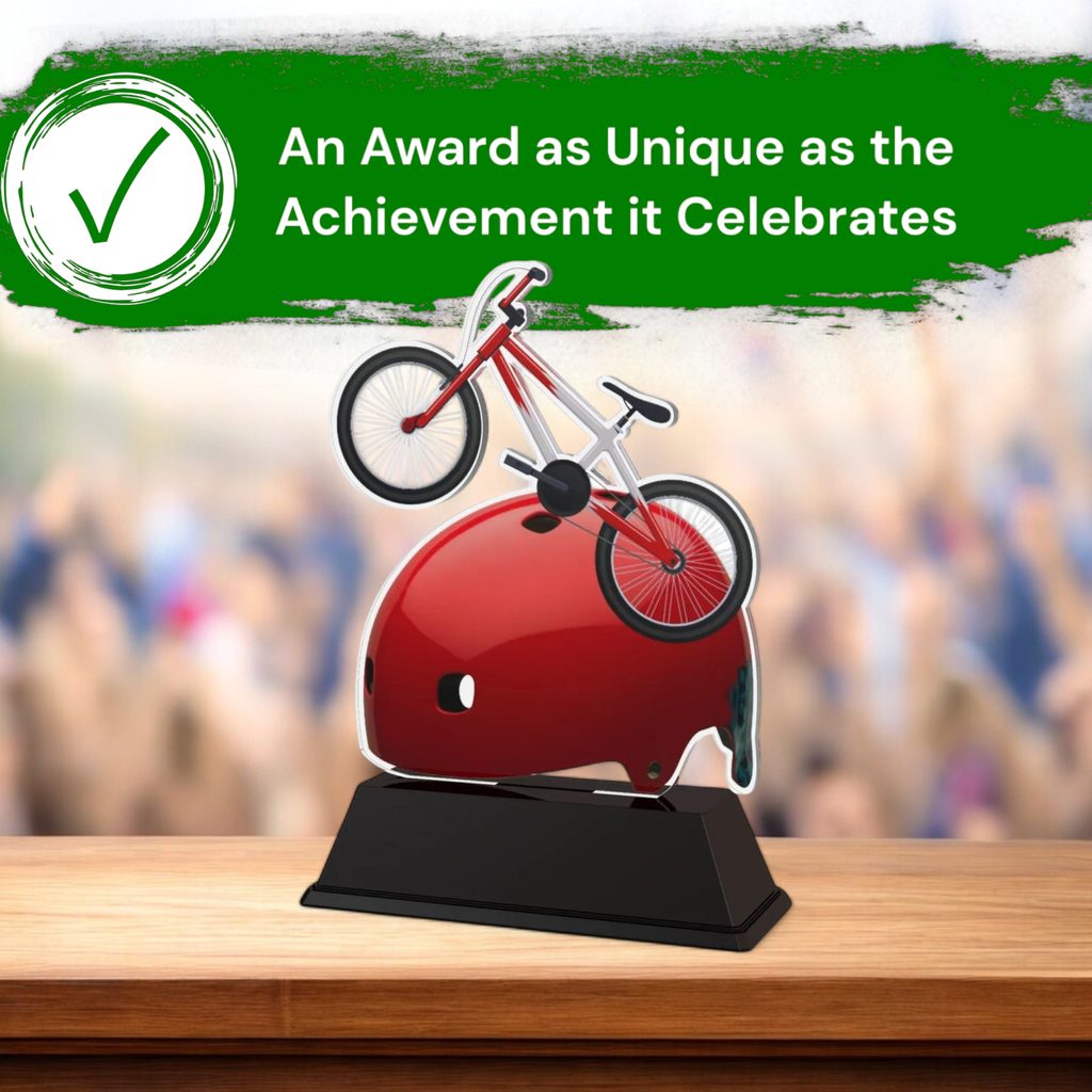 The Ostrava Bmx Cycling Trophy is a modern and affordable award, offering a sleek and professional look.