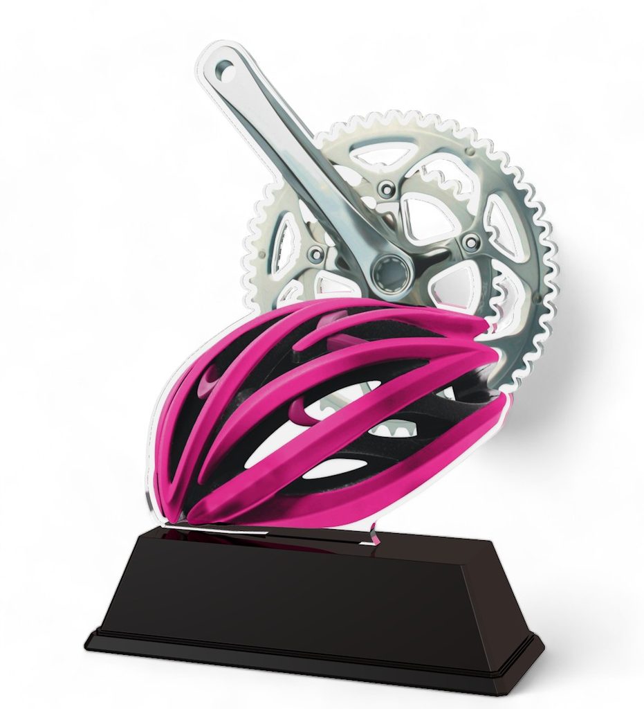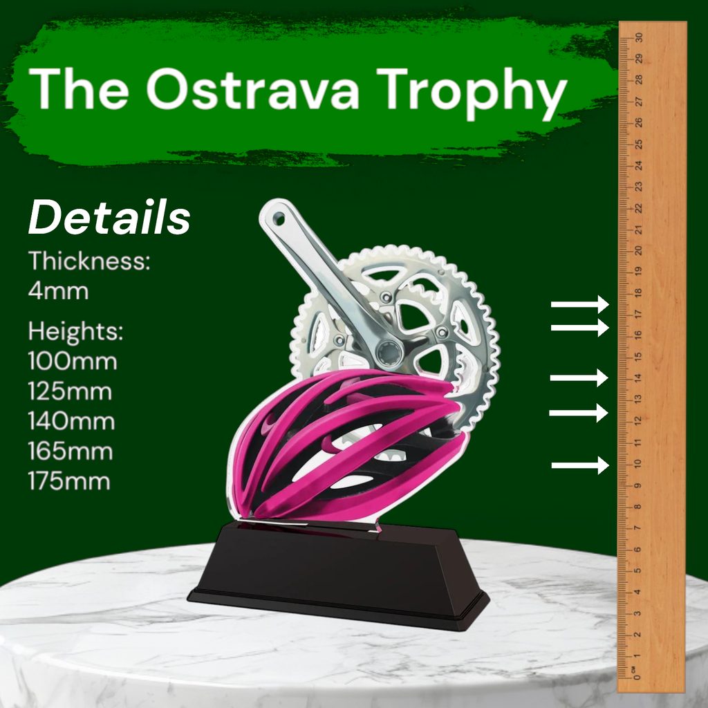 The Ostrava Cycling Pink Helmet Trophy is a modern and affordable award, offering a sleek and professional look.