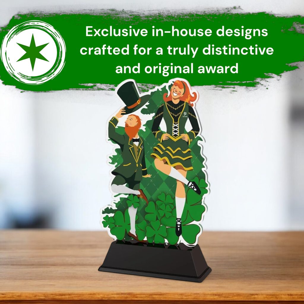 The Ostrava Irish Dance Trophy is a modern and affordable award, offering a sleek and professional look.