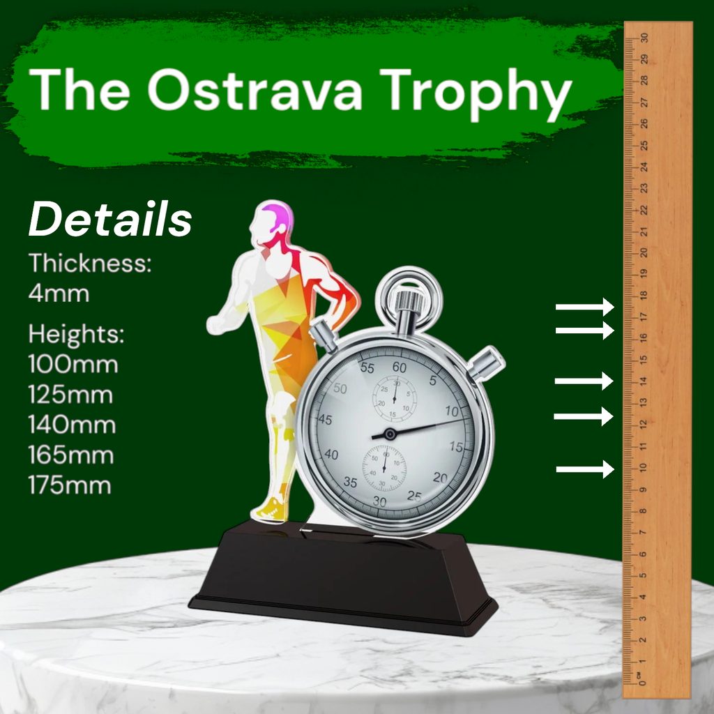 The Ostrava Running Man Trophy is a modern and affordable award, offering a sleek and professional look.