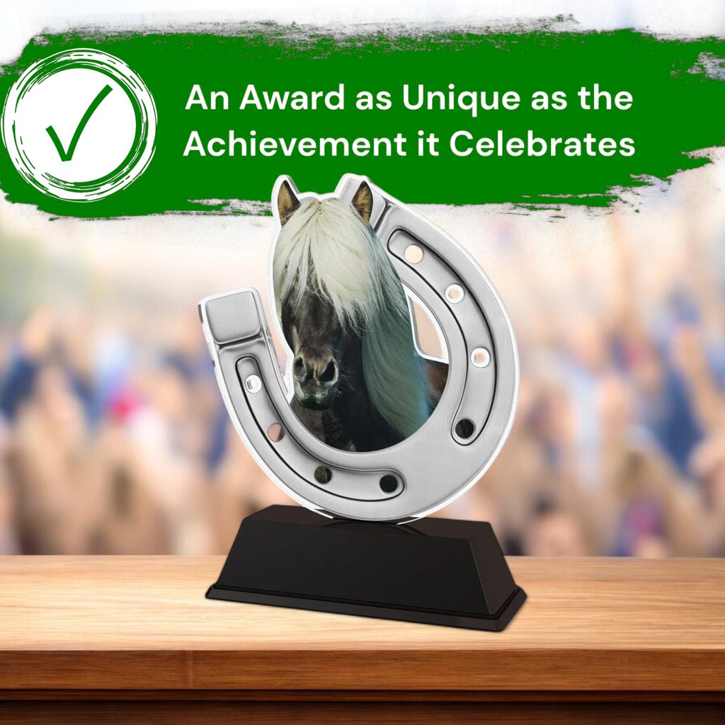 The Ostrava Silver Horse Shoe Trophy is a modern and affordable award, offering a sleek and professional look.