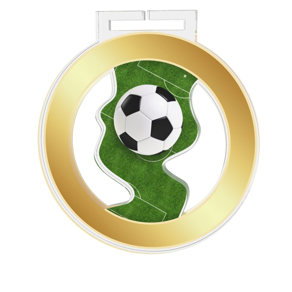 The Paisley Football Medal Gold is made from 6mm thick acrylic with a very high quality reverse full colour print. Expertly cut out in the middle making for a unique style medal. Select form three large sizes. The medal comes complete with a bar fitting to accommodate a ribbon.
