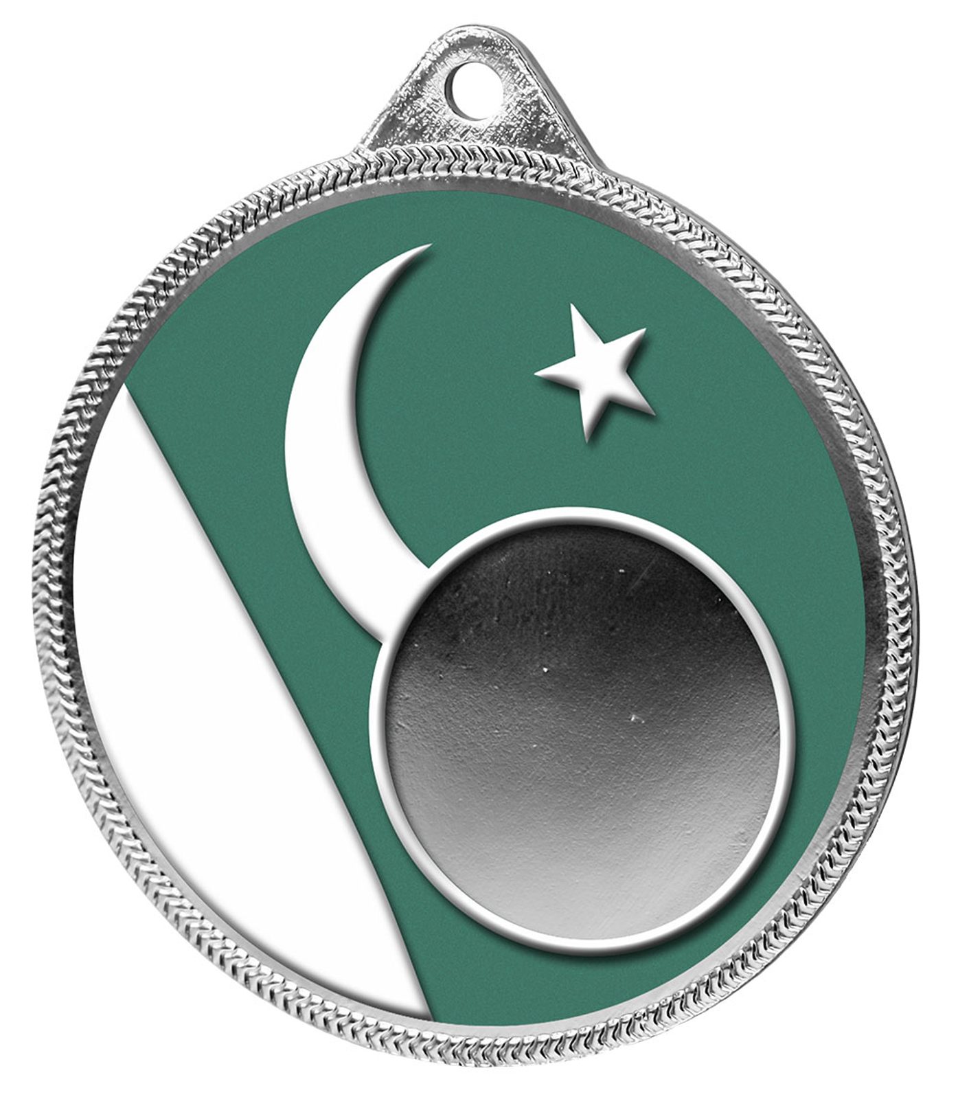 The Pakistan Flag Logo Insert Silver Medal is exclusive to Trophy Monster. Give out medals to remember with this uniquely designed metal 55mm medal. The medal has been printed using the latest 3D