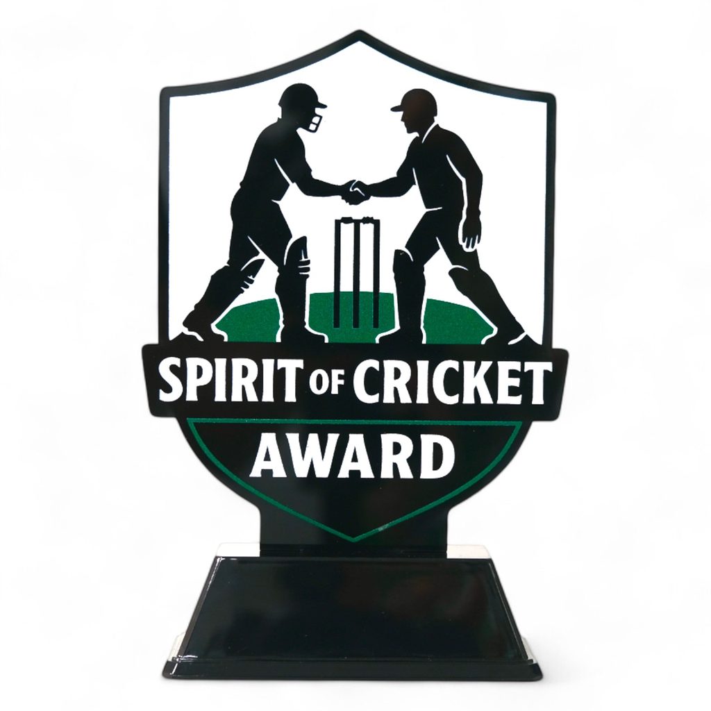 Recognise sportsmanship and fair play with the Pavilion Spirit of Cricket Award. Part of Trophy Monster’s exclusive Pavilion Collection, this award is crafted from 4mm printed black acrylic with bold black, green and white branding. Offered in six sizes and supplied with a FREE engraved plate, it’s a unique trophy designed in-house and available only from Trophy Monster.