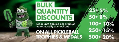 From high-speed rallies to last-point deciders, reward every thrilling match with our exclusive Pickleball trophies. With free engraving, free logo inserts, and designs that evolve as fast as the game itself, click 'Add to Cart' now and serve up something special at your next awards presentation.