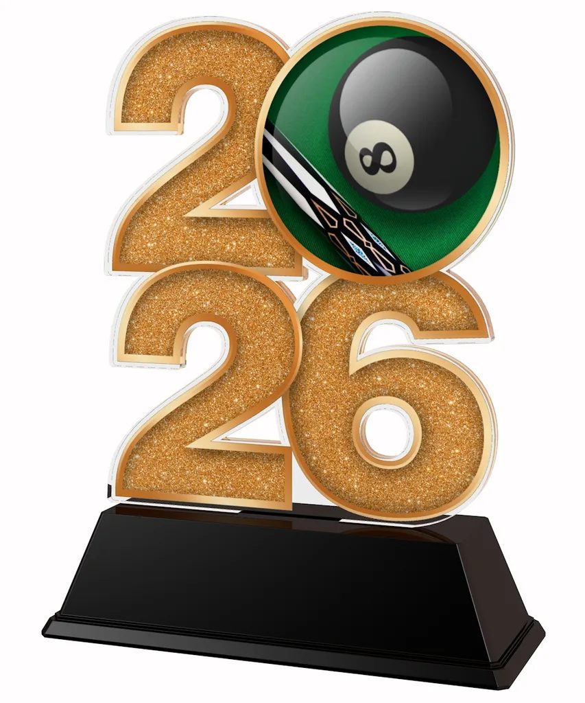 Celebrate precision and competition with the Pool Year Trophy, a bold and modern acrylic award designed especially for pool leagues, tournaments, clubs and competitions. Featuring a striking year design and full-colour pool-themed imagery, this trophy makes a standout centrepiece for any presentation night.