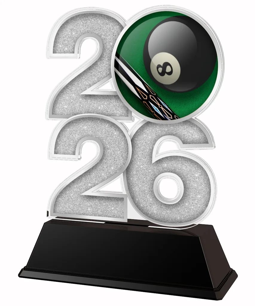 Celebrate precision and competitive success with the Pool Year Trophy, a bold and modern acrylic award designed especially for pool leagues, clubs, tournaments and competitions. Featuring a striking year design and full-colour pool-themed imagery, this trophy makes a standout centrepiece for any presentation night.