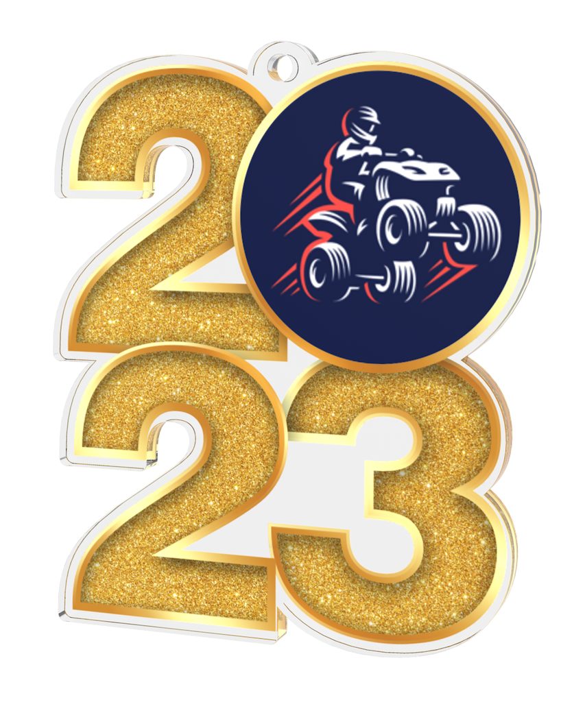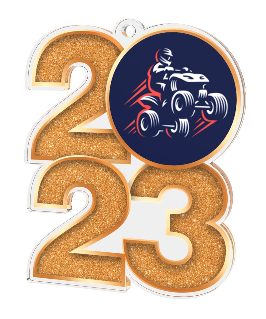 The Quad Bike 2023 Acrylic Medal is part of a brand new exciting exclusive range available in a gold, silver or bronze finish. Made in a large size of 70mm (h) x 60mm (w).