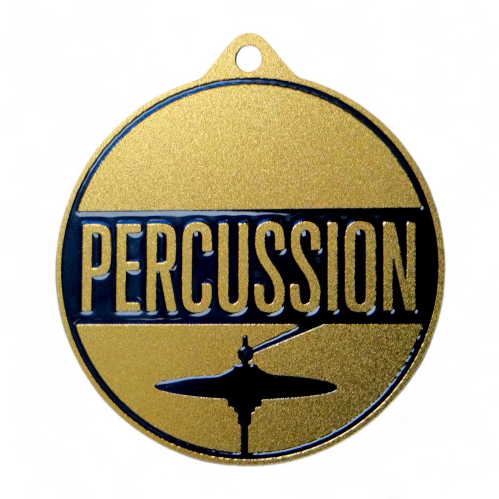 Celebrate rhythm and musical talent with the Quantum Percussion Stainless Steel Medal — perfect for drumming competitions, concerts, and school music awards.