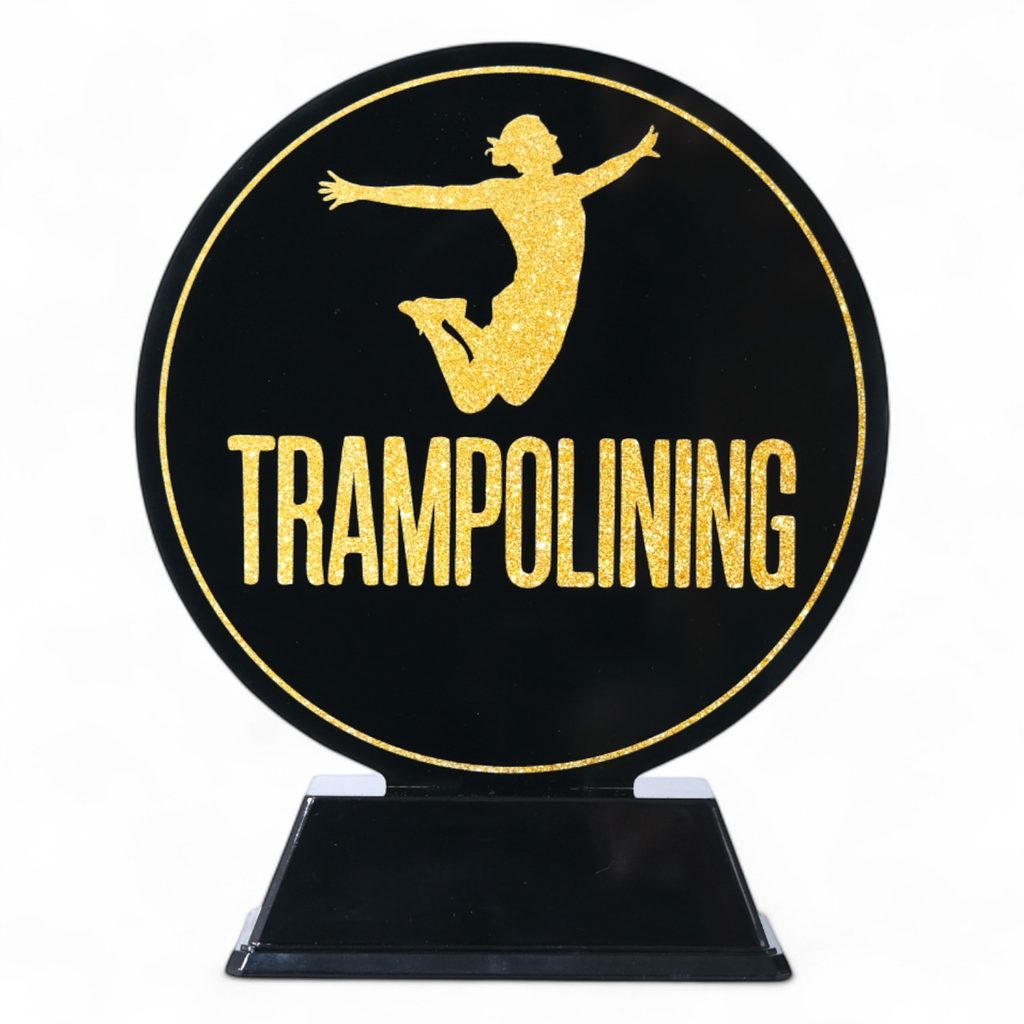 Celebrate energy and skill with the Quantum Trampolining Trophy. Featuring a dynamic gold silhouette, it’s a fun and stylish award for gymnasts and trampolining competitors.