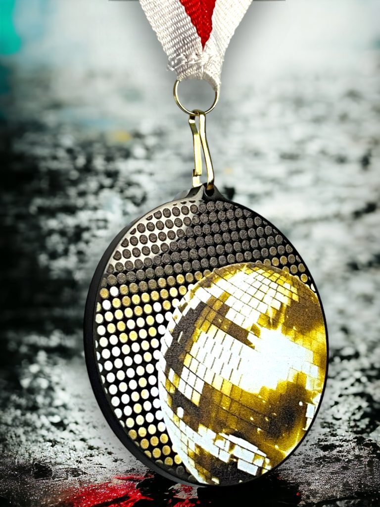 Celebrate achievement with the Rincon Classic Disco Ball Black Acrylic Medal, a striking and contemporary award designed to stand out.