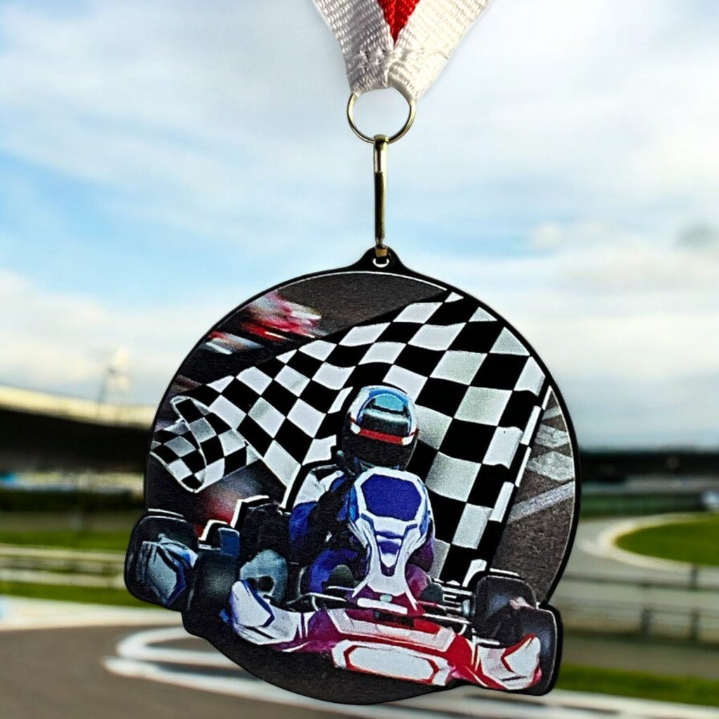 Celebrate achievement with the Rincon Colour Go Kart Black Acrylic Medal, a striking and contemporary award designed to stand out.