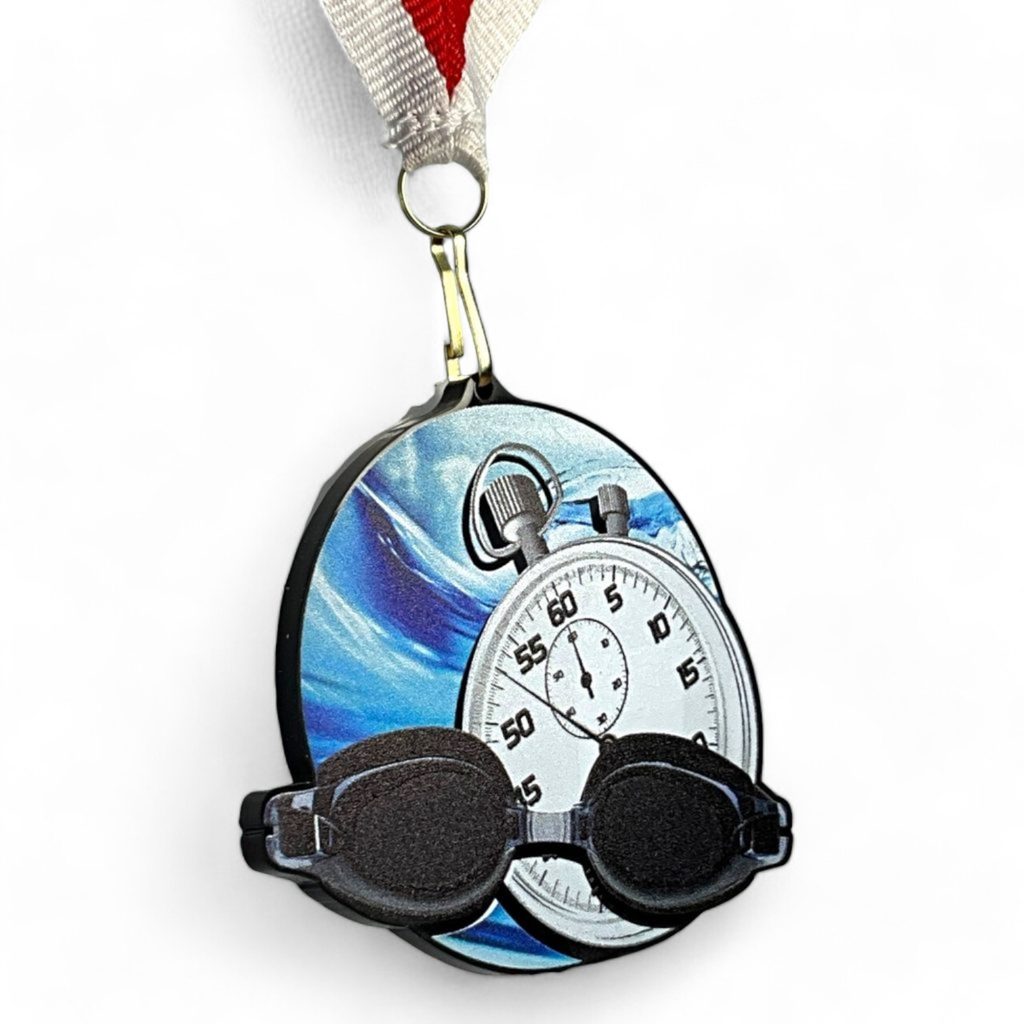 Celebrate achievement with the Rincon Colour Swimming Black Acrylic Medal, a striking and contemporary award designed to stand out.