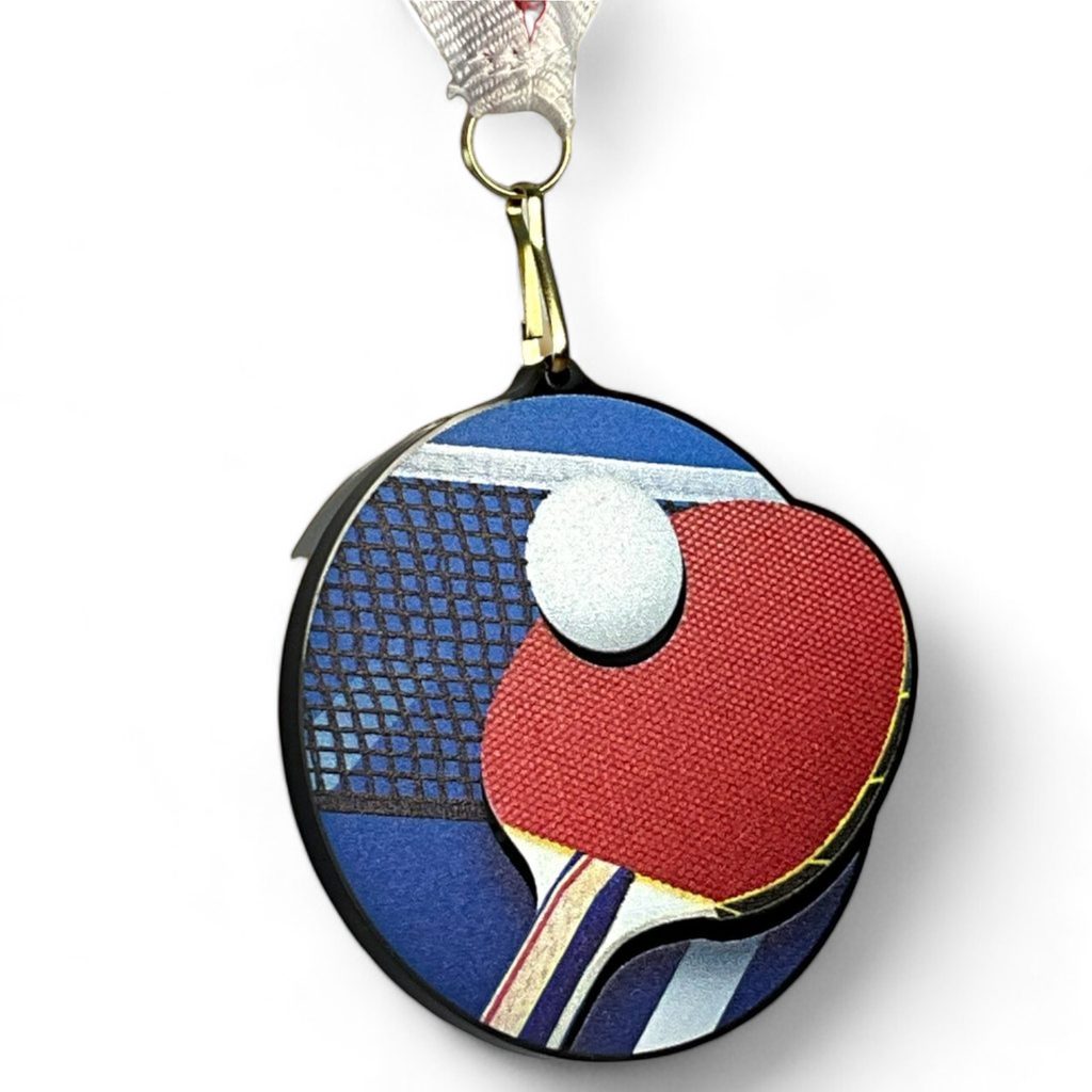 Celebrate achievement with the Rincon Colour Table Tennis Black Acrylic Medal, a striking and contemporary award designed to stand out.