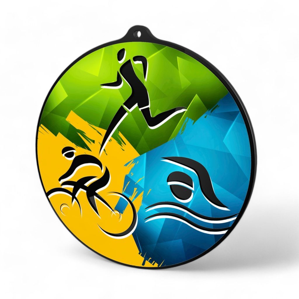 Celebrate achievement with the Rincon Colour Triathlon Black Acrylic Medal, a striking and contemporary award designed to stand out.