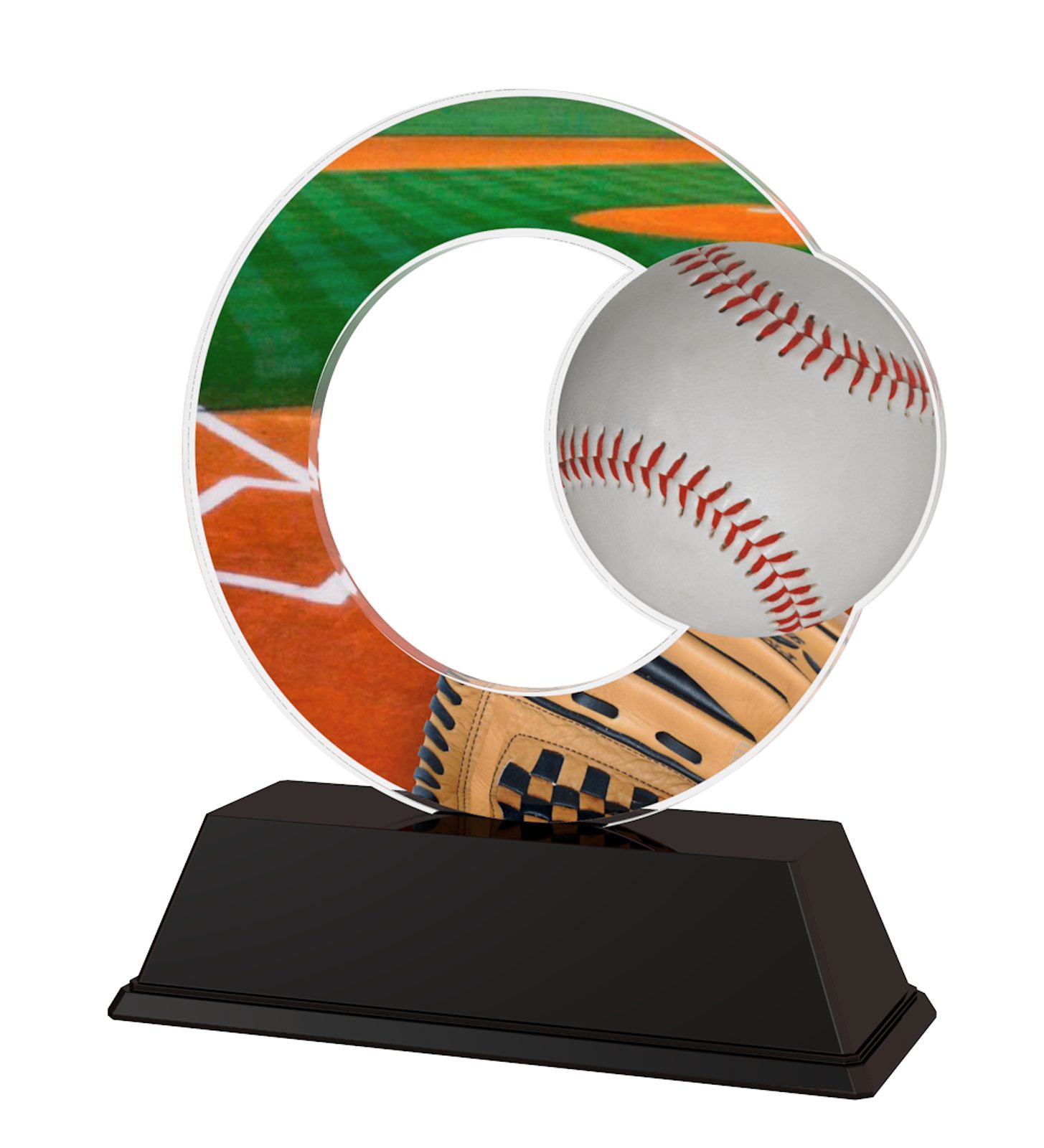The Rio Baseball Trophy is a vibrant low cost award with cutting edge design. Cut out to shape this trophy features