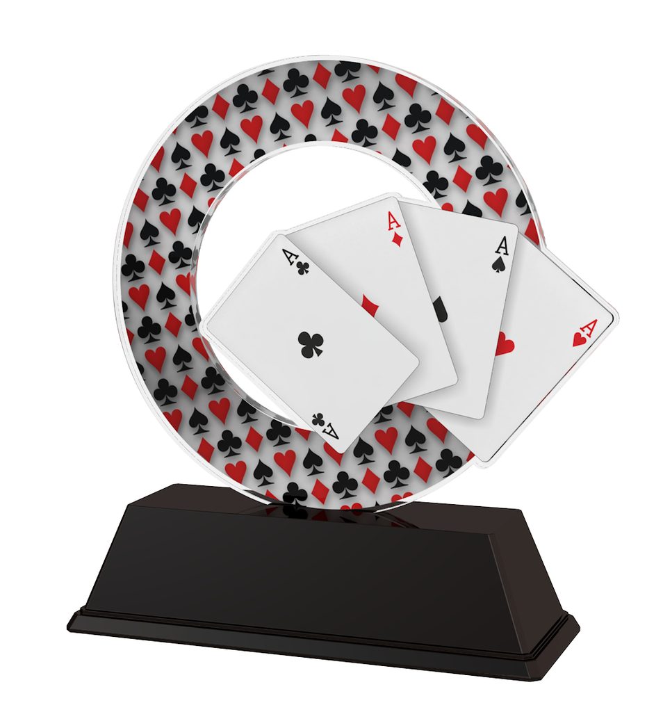 The Rio Card Games Trophy is a vibrant low cost award with cutting edge design. Cut out to shape this trophy features