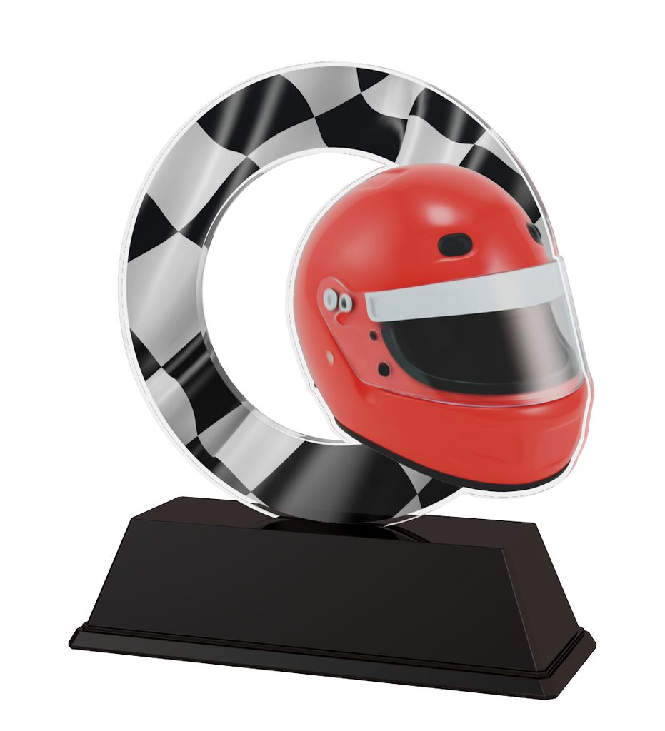 The Rio Motorsports Helmet Trophy is a vibrant low cost award with cutting edge design. Cut out to shape this trophy features