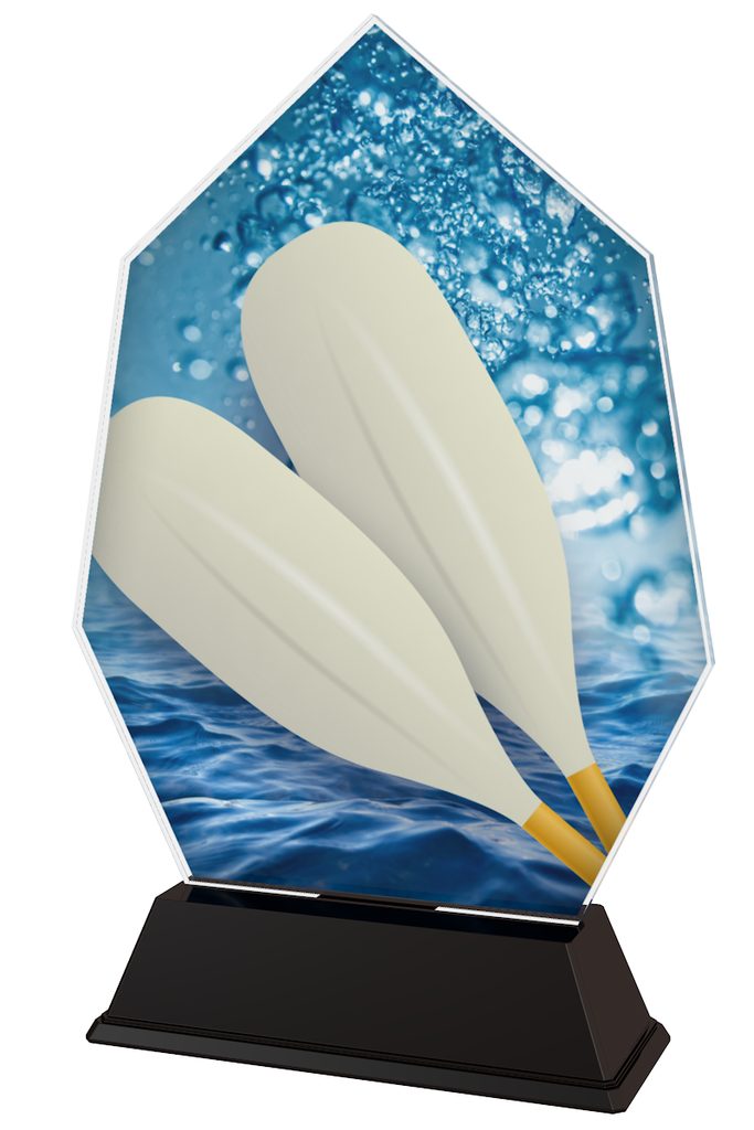 The Roma Rowing Trophy is a striking and impressive award. Expertly cut to shape, this trophy comes to life with a high quality full colour double sided print on 4mm thick acrylic mounted on a black PVC base.
