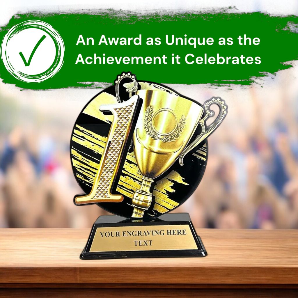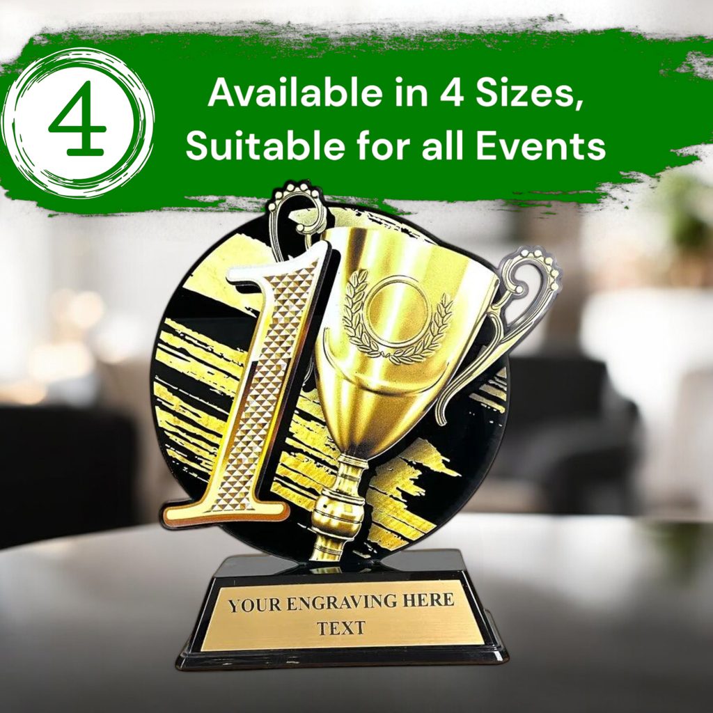The Roswell Number 1 Trophy is a contemporary award designed for vibrant, full-surface printing.