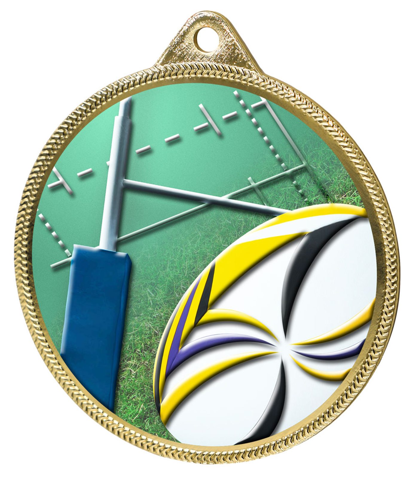 The Rugby 3D Texture Print Full Colour 55Mm Medal - Gold showcases revolutionary design with cutting-edge printing technology