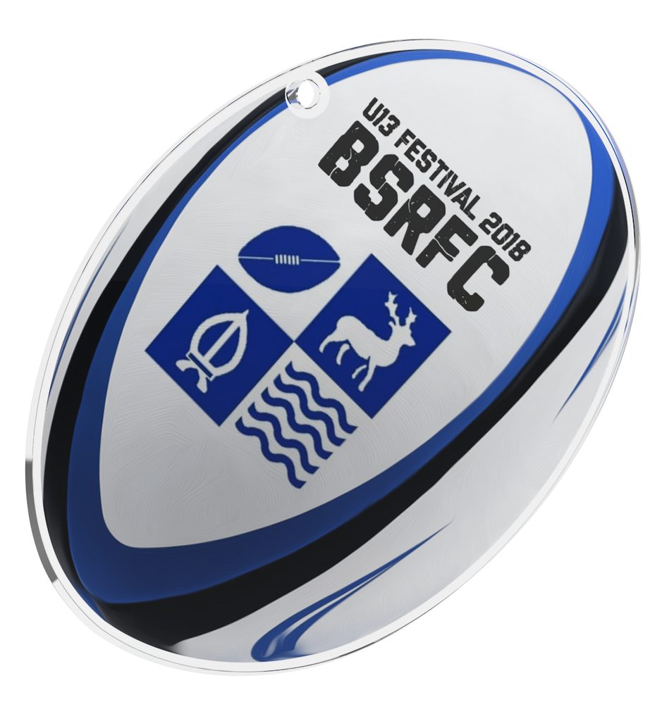 Have your clubs logo custom printed onto the Custom Rugby Ball Club Logo Acrylic Medal. No set-up or origination charges.