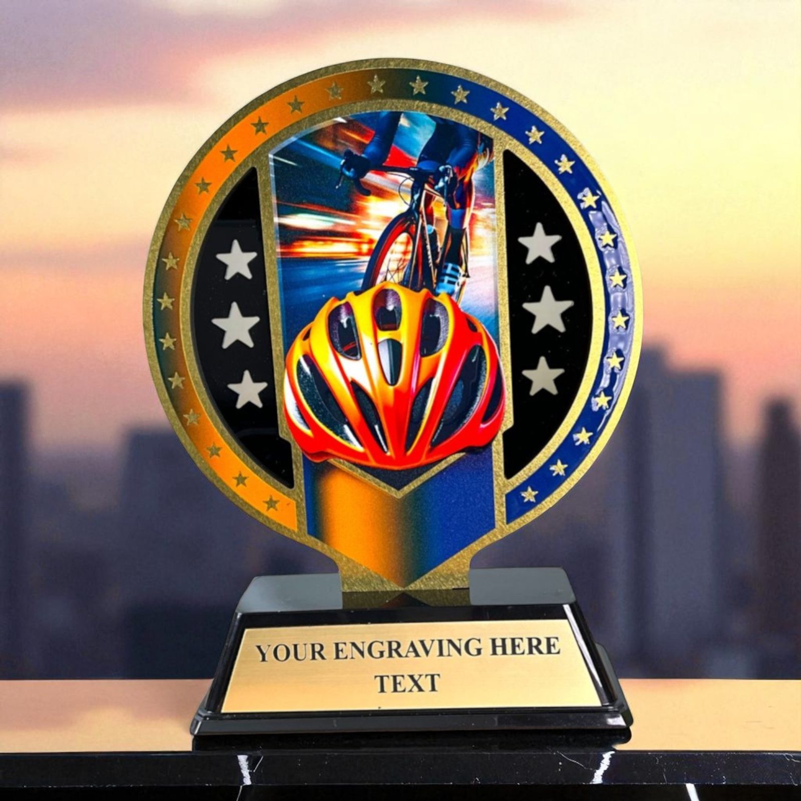 Sleek Black PVC Base – Strong and streamlined, ideal for engraving race titles, categories, or personal achievements.