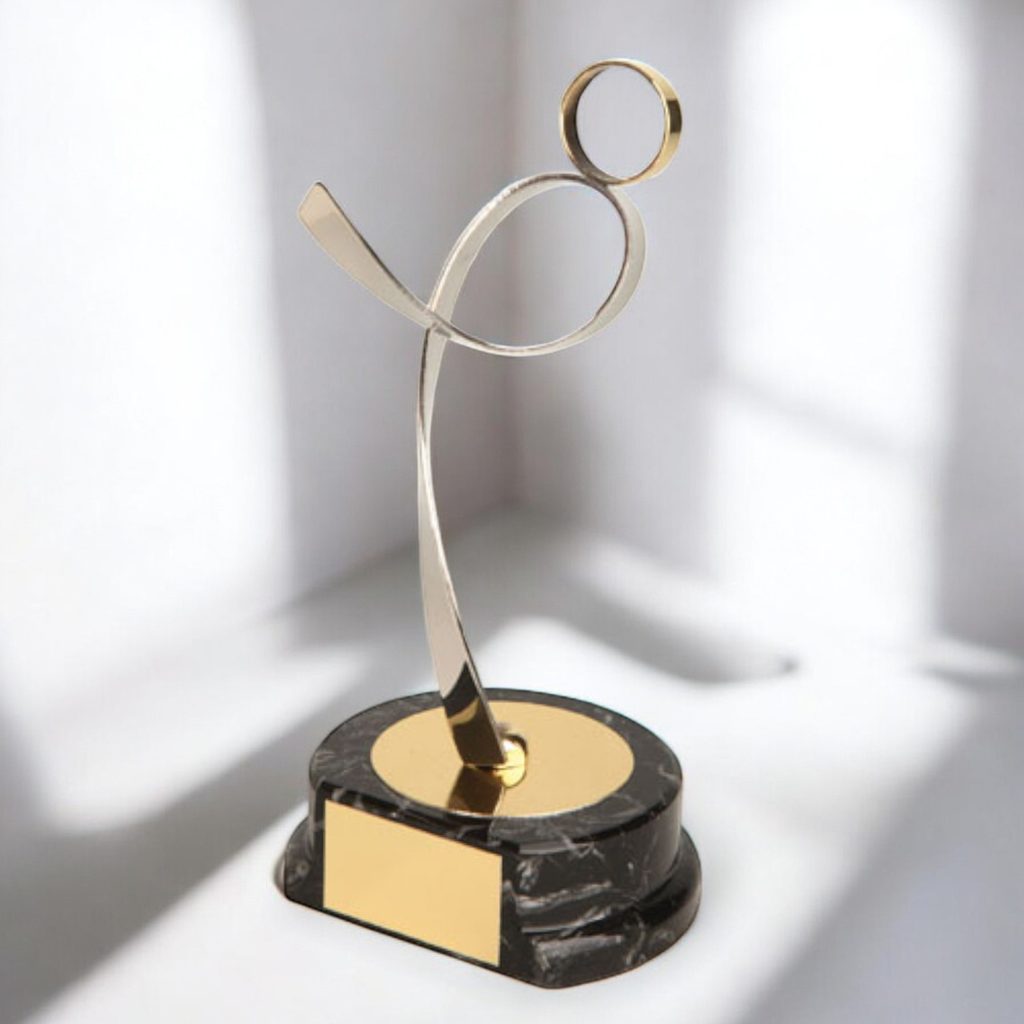 Presenting the remarkable Sevilla Trophy—a finely crafted metal award that embodies grace and sophistication. This exclusive piece is elegantly set on a distinctive marble effect wooden base, adding a refined touch of luxury to any setting.