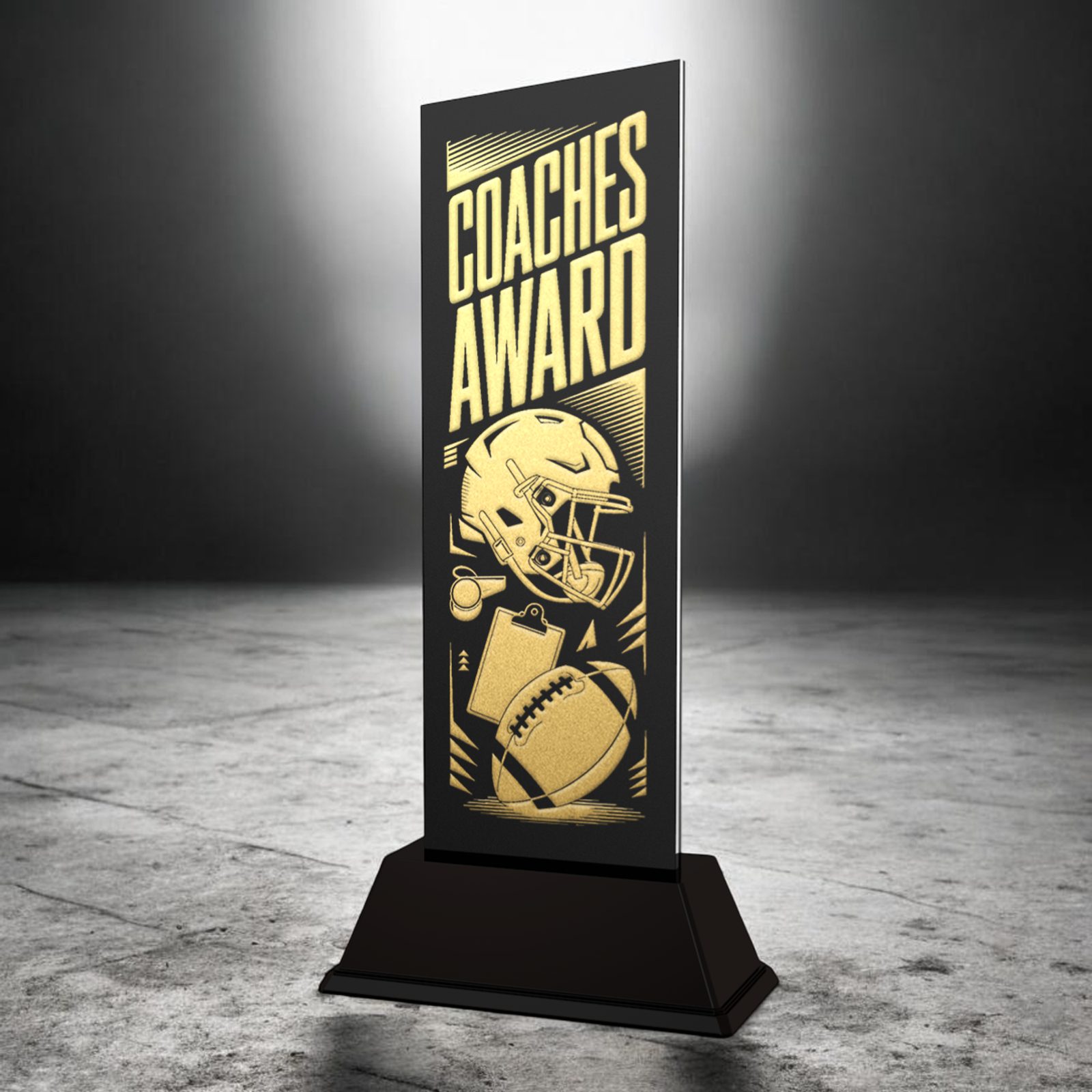 The Shadowline American Football Coaches Award Trophy – Stainless Steel Award recognises leadership, work ethic, and team spirit. Crafted from precision-cut stainless steel and black acrylic, this award delivers a substantial, premium feel ideal for American Football Awards UK ceremonies.