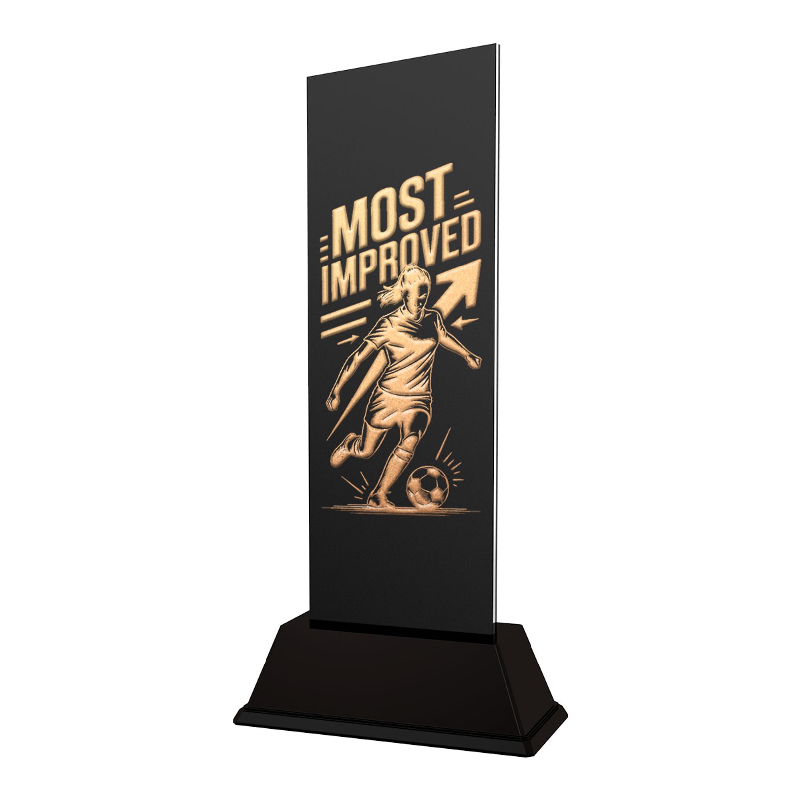 As part of the Shadowline collection, the Female Most Improved Player Award combines modern design, premium materials, and lasting significance — a trophy worthy of the player whose dedication and improvement have defined the season.
