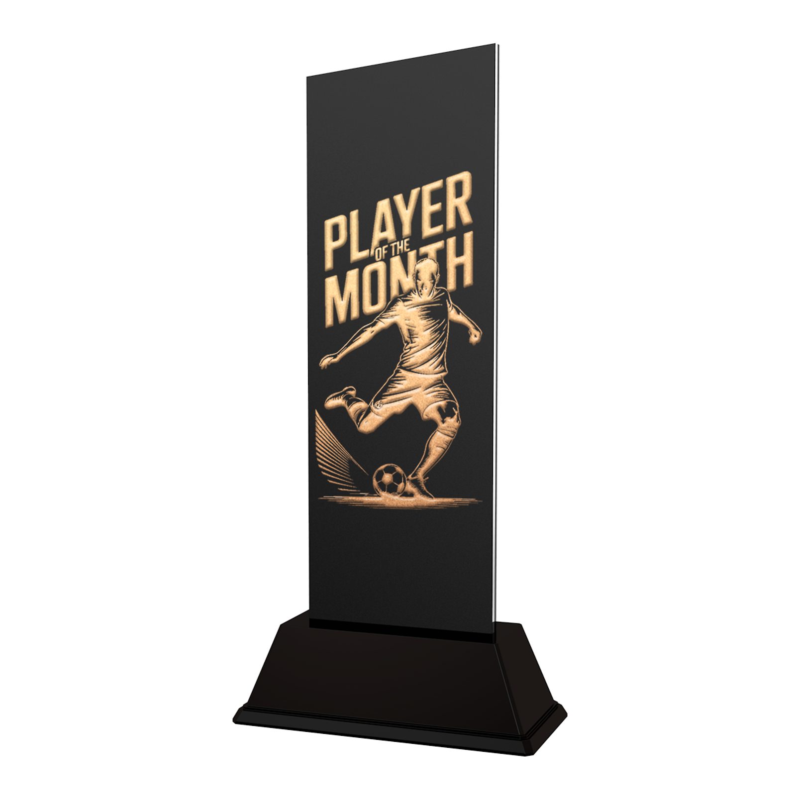 Part of the Shadowline range, the Football Male Player of the Month Trophy is a fitting way to recognise outstanding form and contribution over a shorter period.