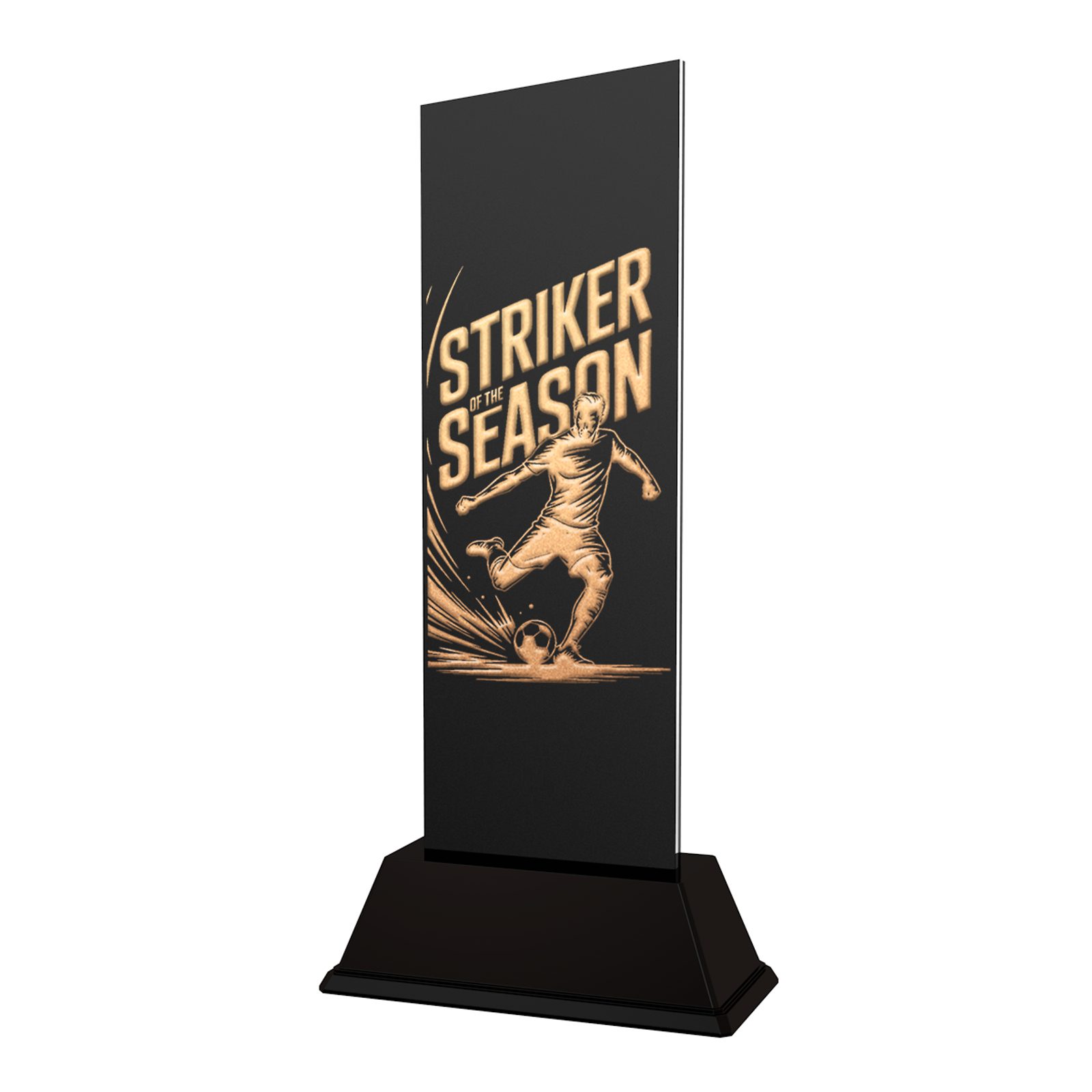 Recognise attacking excellence and decisive finishing with the Shadowline Football Male Striker Trophy — a contemporary award designed to celebrate the player who makes the difference in front of goal.