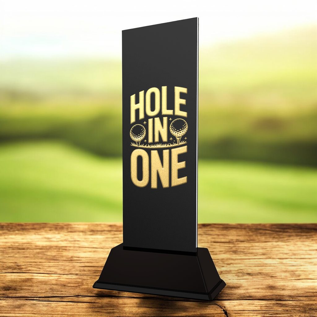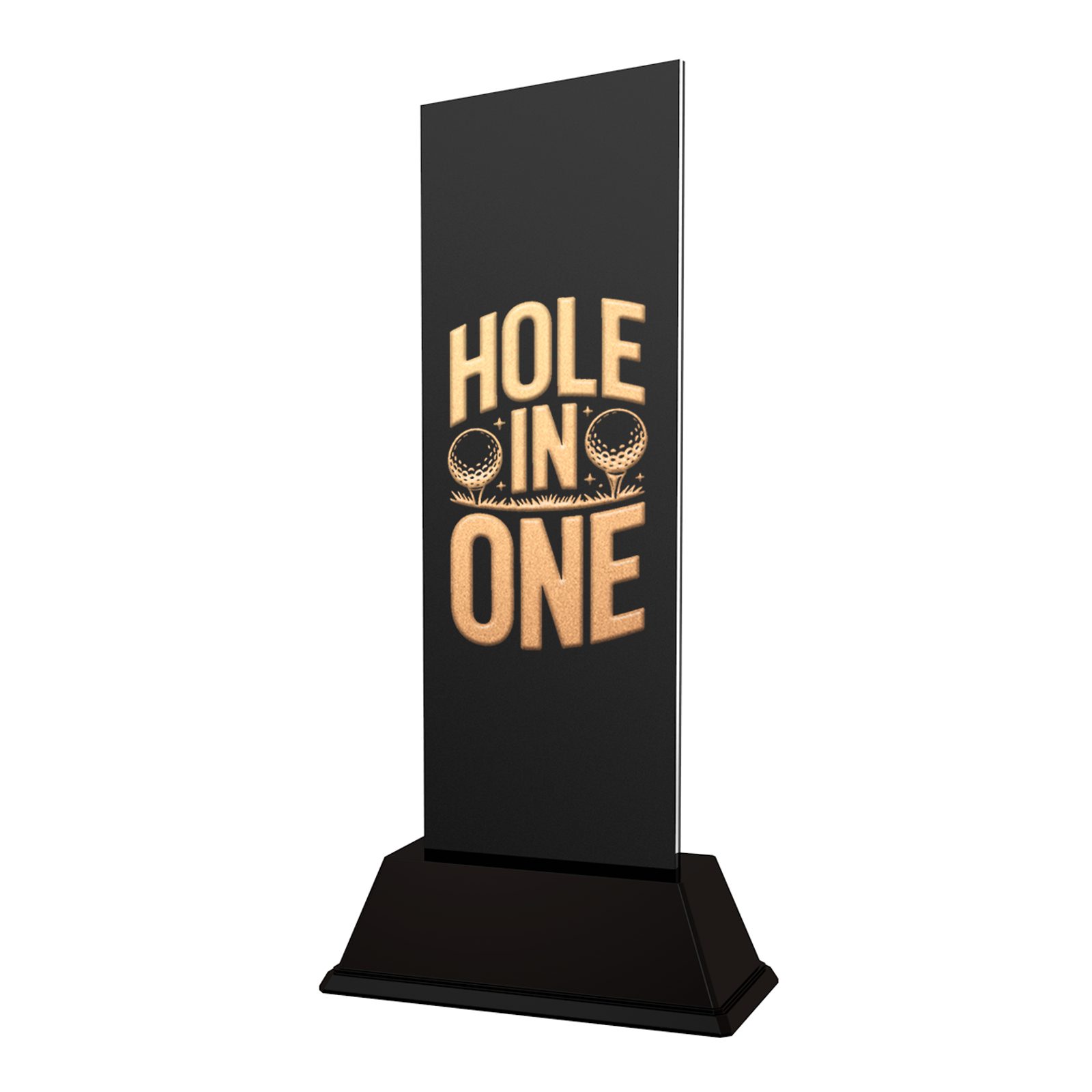 The Shadowline Golf Hole in One Trophy is a sleek, modern award designed to celebrate one of golf’s most remarkable achievements. Crafted from stainless steel and black acrylic, and finished in a refined matt titanium effect, this trophy delivers a premium, contemporary feel with a clean, architectural presence—perfect for golf days, tournaments, and club presentations.