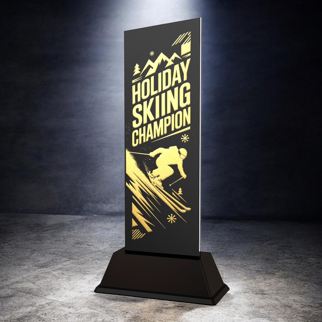 The Shadowline Holiday Skiing Champion Trophy – Stainless Steel Award is the perfect modern award for end-of-trip competitions, resort challenges, and friendly alpine rivalries. Crafted from stainless steel and black acrylic with a refined matt titanium finish, this trophy delivers premium presentation for ski holidays and group competitions.