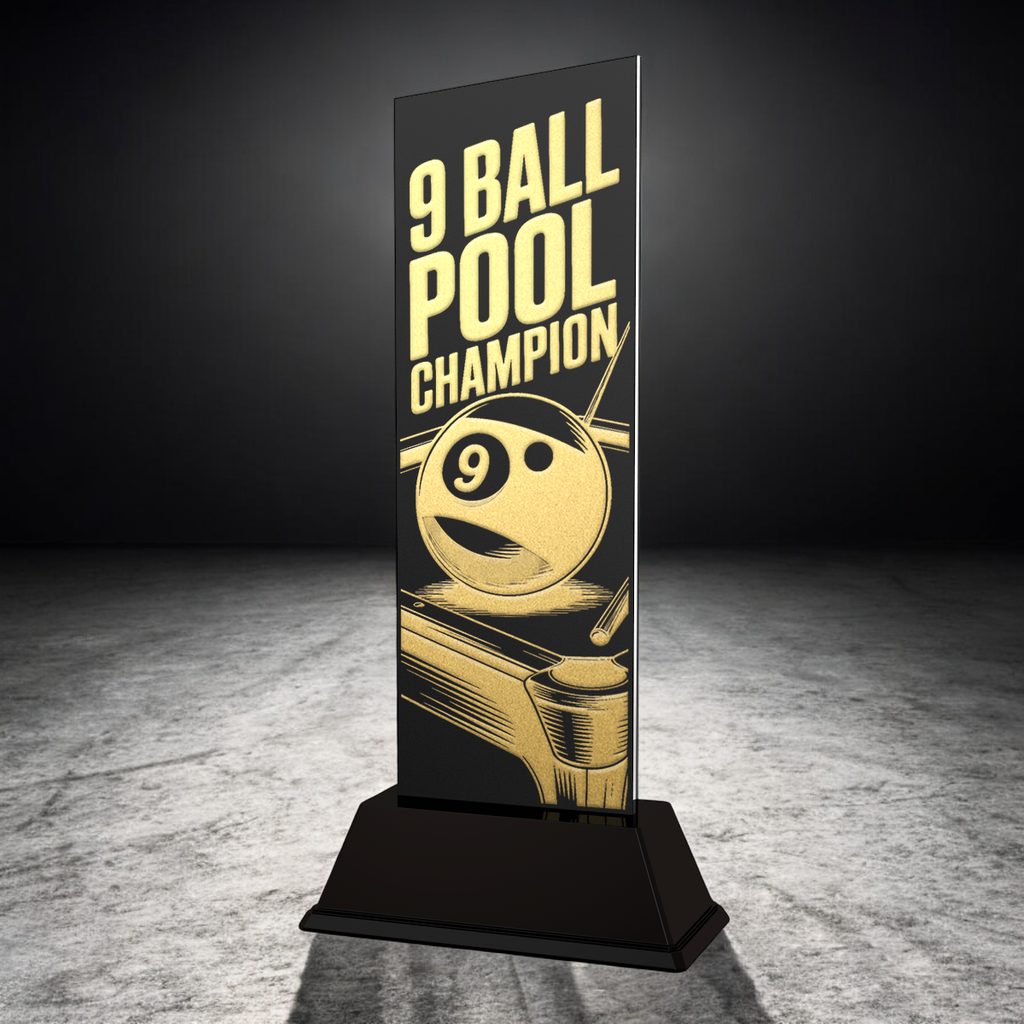 The Shadowline 9 Ball Pool Champion Trophy is a sleek, modern award designed to recognise precision, control, and championship performance in fast-paced 9 ball competition. Crafted from stainless steel and black acrylic, and finished in a refined matt titanium effect, this trophy delivers a substantial, contemporary feel with a bold, professional presence ideal for leagues, tournaments, and finals nights.