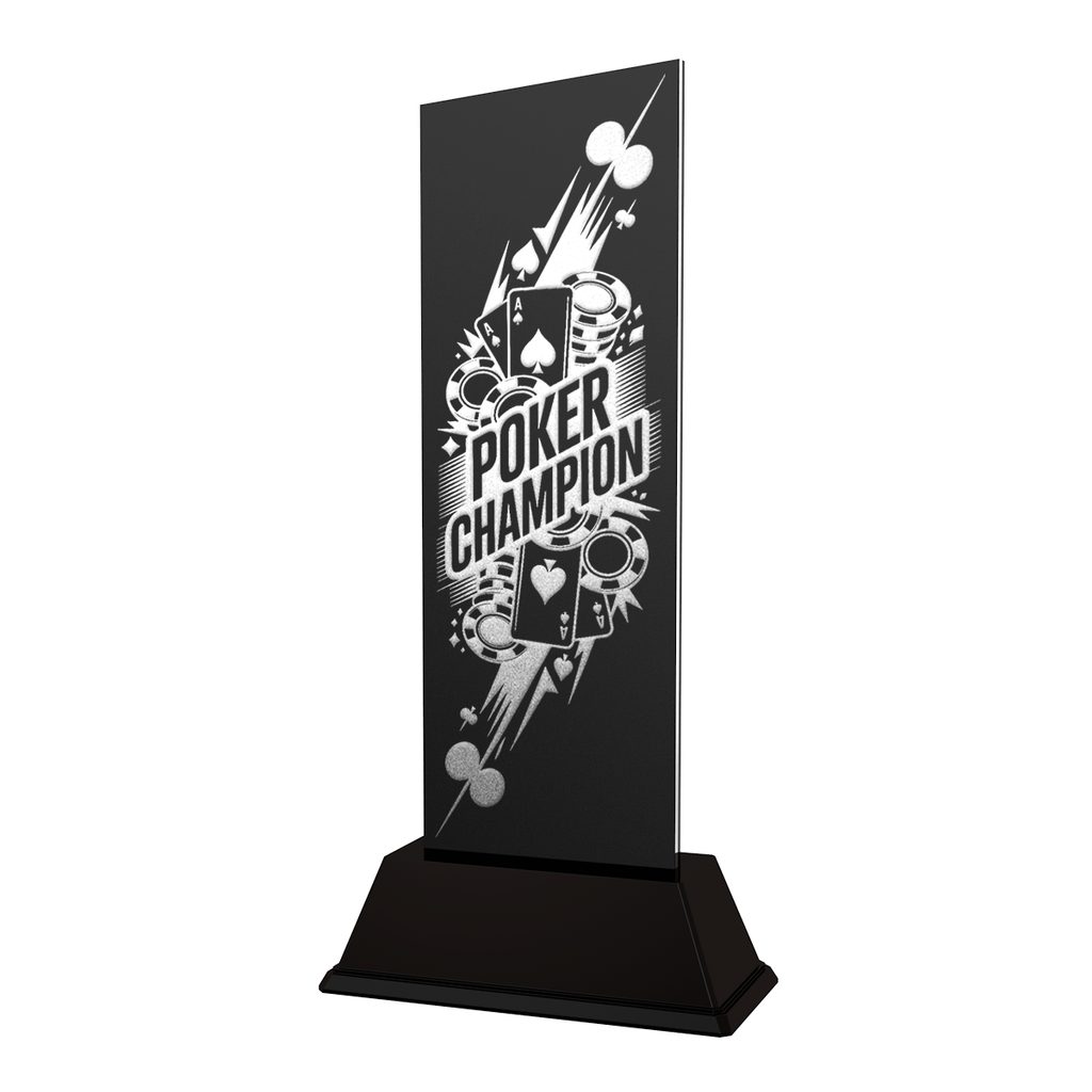 The Shadowline Poker Champion Trophy is a sleek, modern award designed to recognise outstanding performance, strategy, and tournament success at the table. Crafted from stainless steel and black acrylic, and finished in a refined matt titanium effect, this trophy delivers a substantial, contemporary feel with a bold, professional presence ideal for finals, events, and presentation nights.