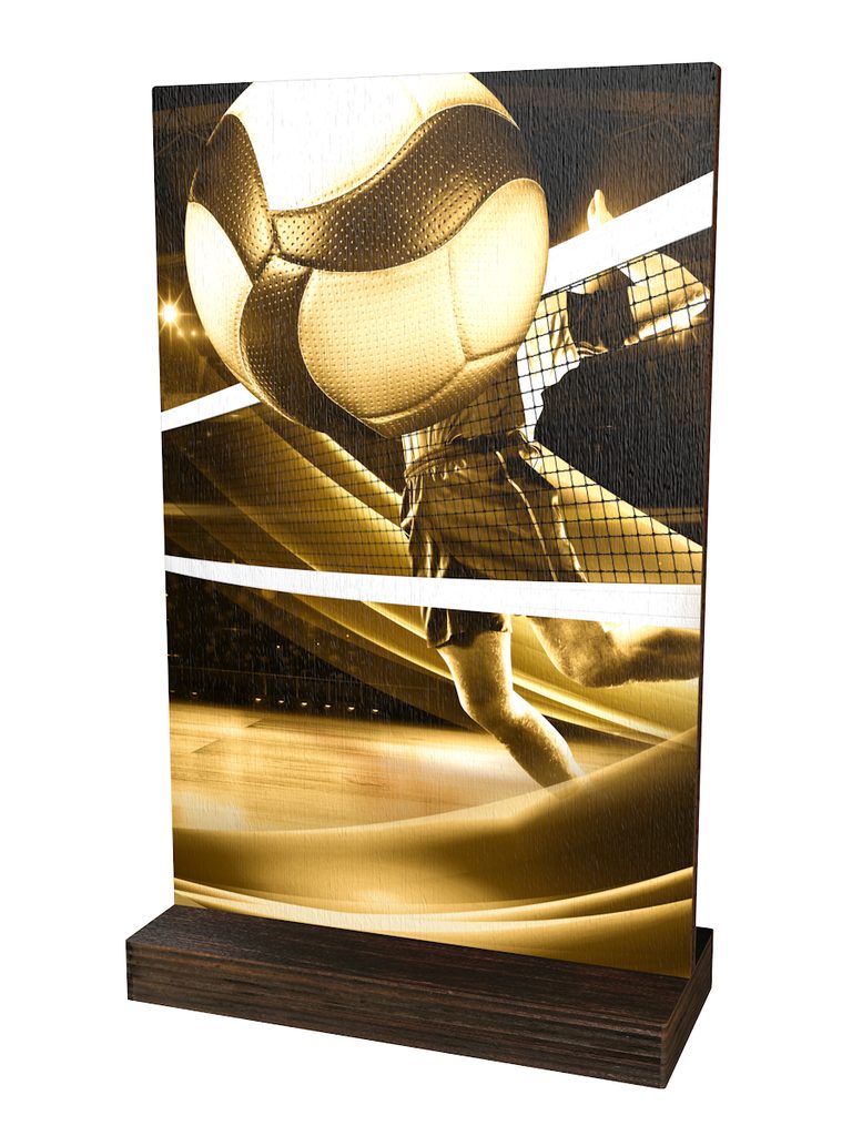 The Sherwood Classic Volleyball Eco Friendly Wooden Trophy is made from 1/2" thick natural birch plywood, mounted on a 25/32" thick wooden base. A sustainable award that is part of a collection designed and manufactured in our own factory. Not only for the environmentally conscious, this trophy will prove popular in any presentation!