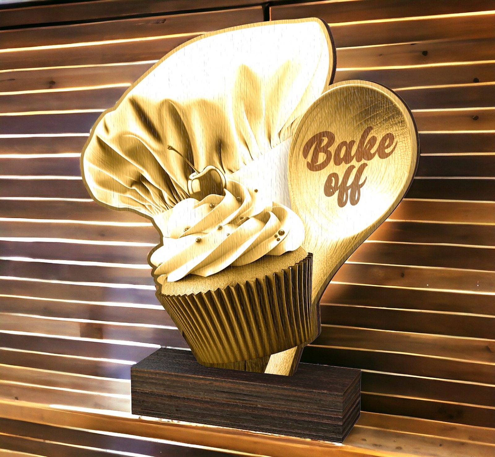 The Sierra Classic Bake Off Real Wood Trophy is an eco-friendly award with a timeless design, perfect for any presentation.