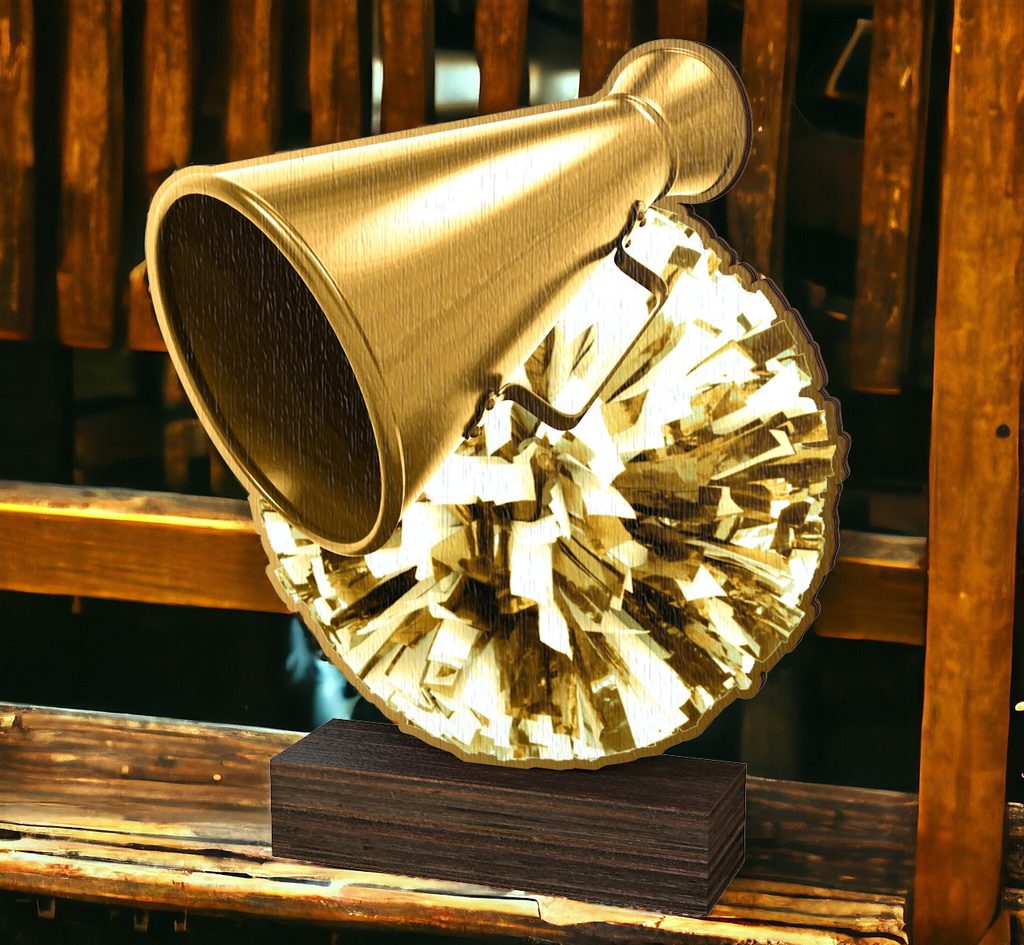 The Sierra Classic Cheerleader Real Wood Trophy is an eco-friendly award with a timeless design, perfect for any presentation.