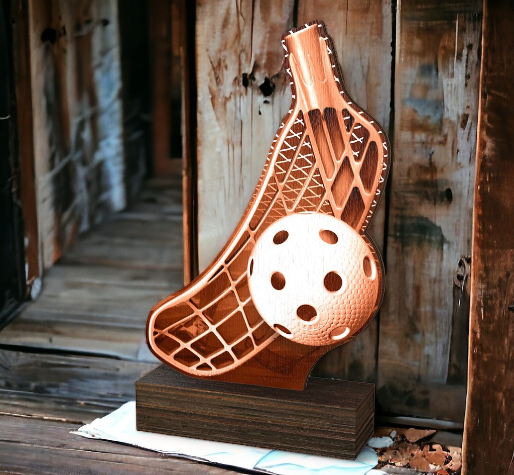 The Sierra Classic Floorball Real Wood Trophy is an eco-friendly award with a timeless design, perfect for any presentation.
