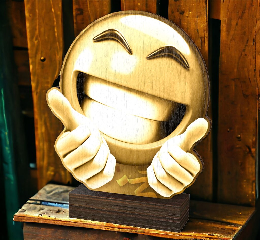 The Sierra Classic Happy Emoji Real Wood Trophy is an eco-friendly award with a timeless design, perfect for any presentation.