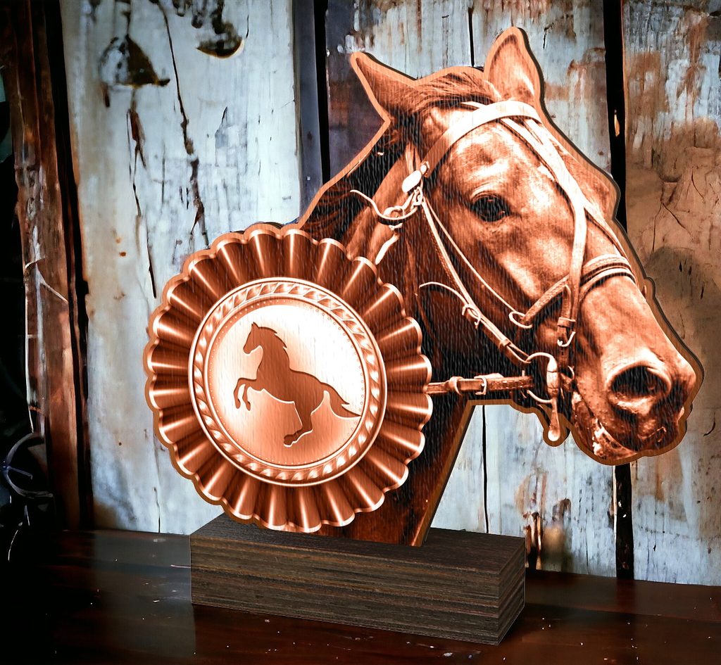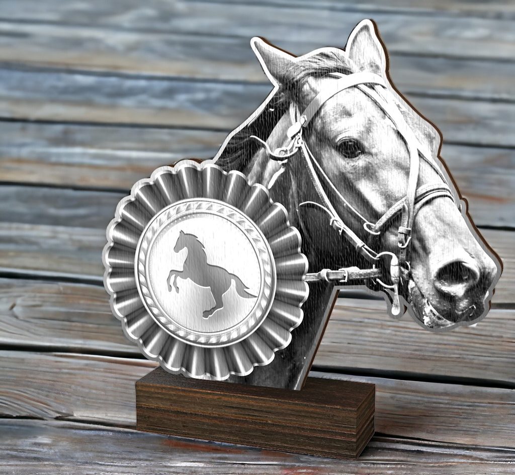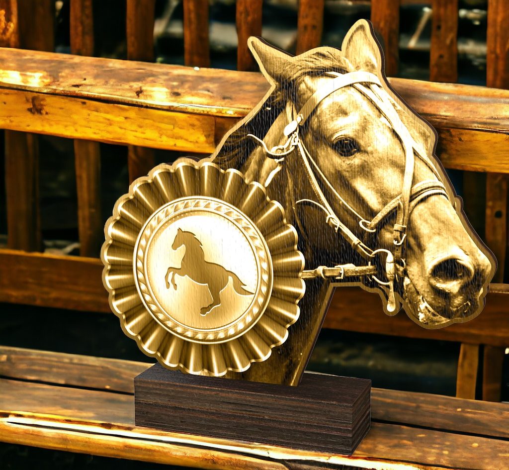The Sierra Classic Horse Head Real Wood Trophy is an eco-friendly award with a timeless design, perfect for any presentation.