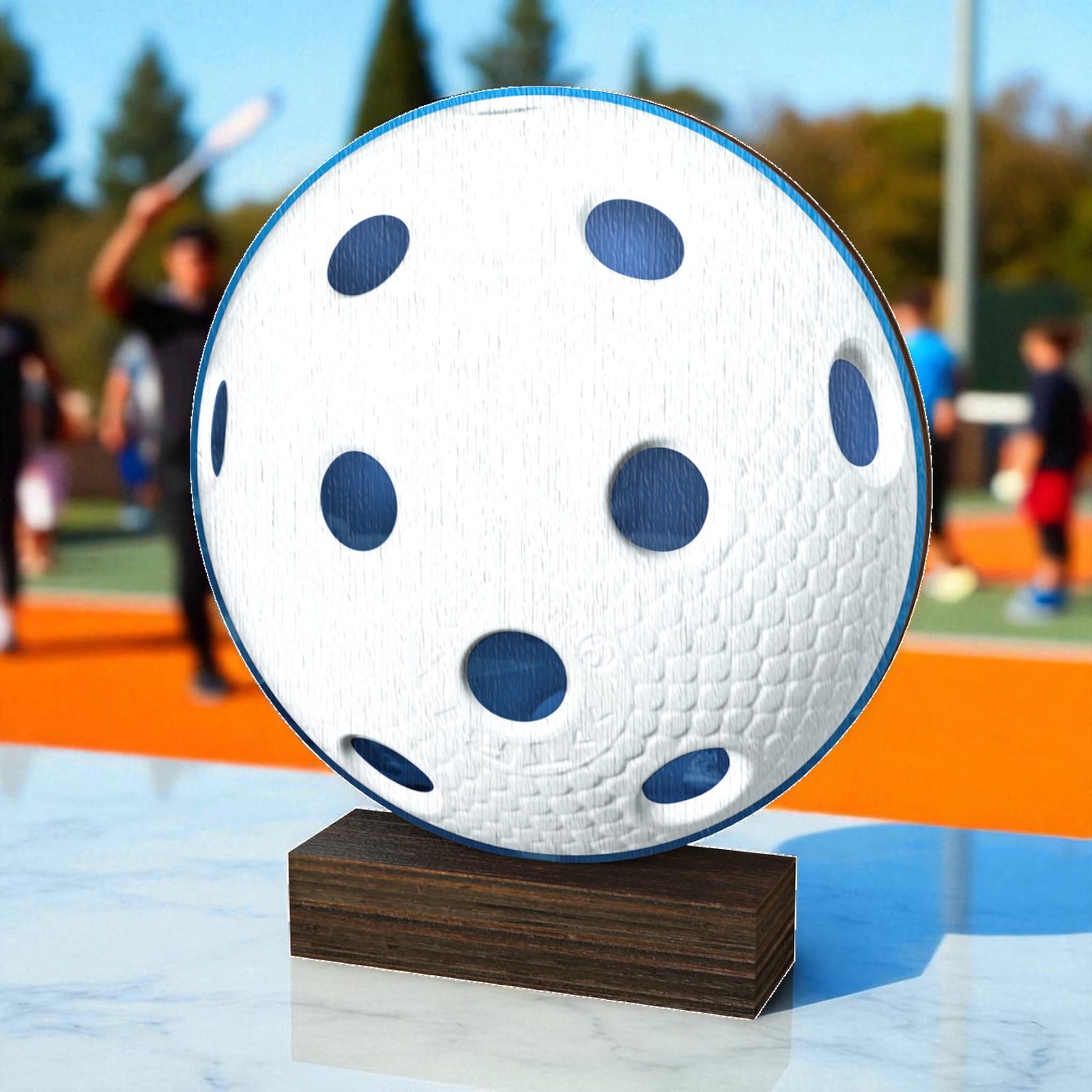 The Sierra Pickleball Ball RealWood Trophy is an eco-friendly award with a timeless design, perfect for any presentation.