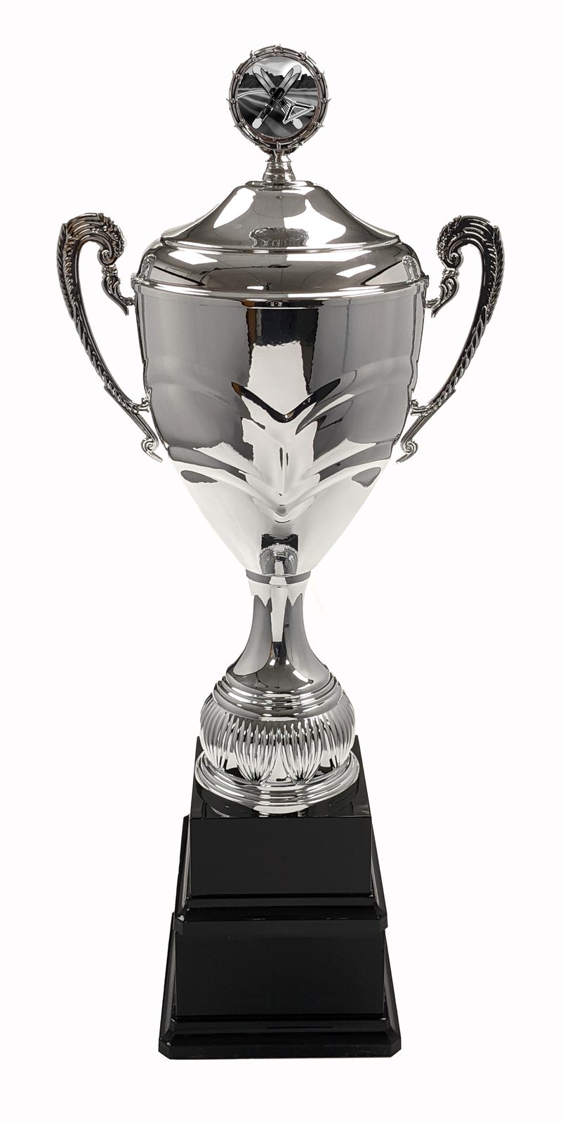 The Skyscraper Waterski Silver Logo Cup is an amazing customisable silver cup award. Consisting of an exclusive heavyweight double-base, with a large metal bowl, handle and lid atop a plastic stem. The additional space on the base makes this cup the perfect choice for an annual award. Comes in 3 great sizes.