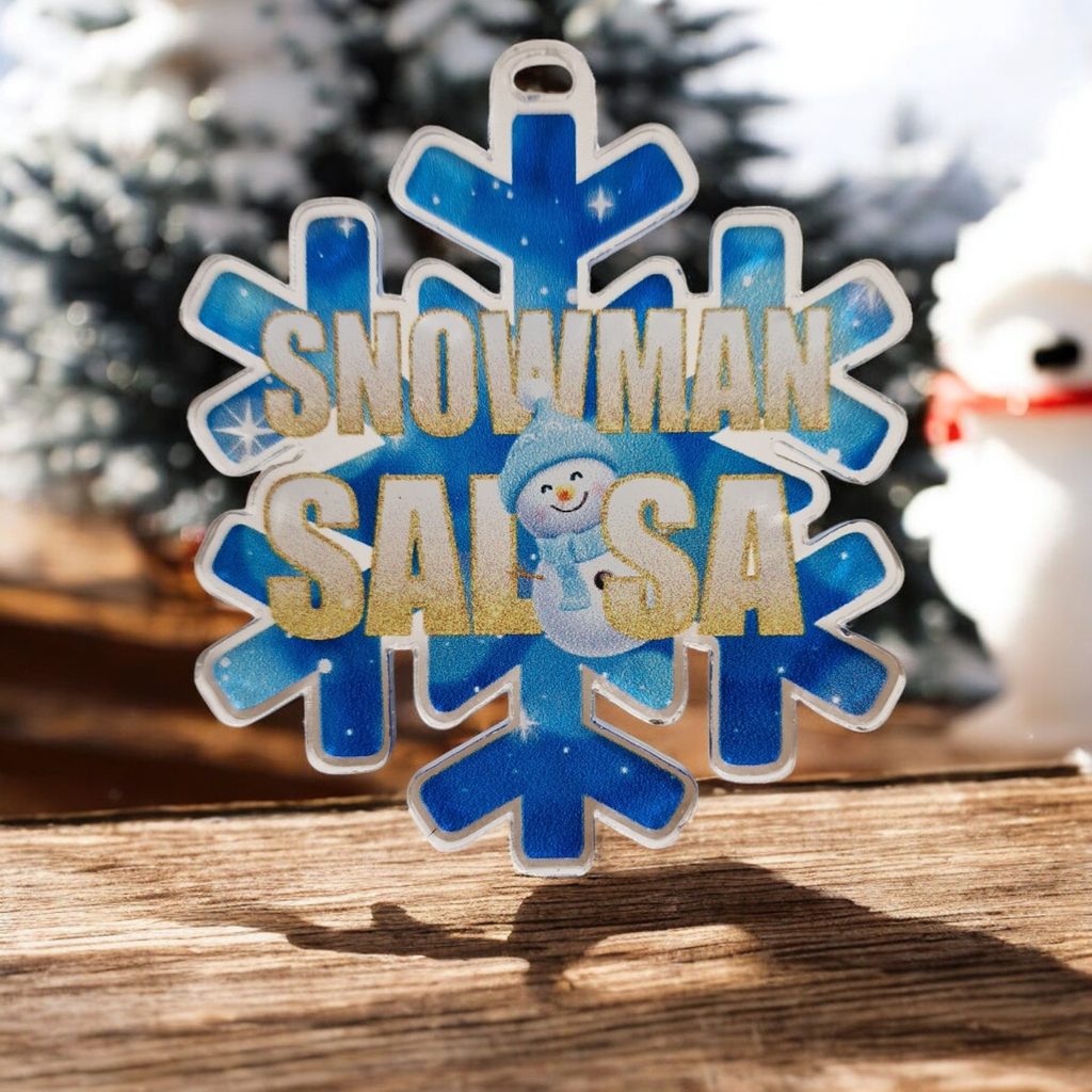 Christmas festive fun with our Christmas Snowman Salsa Snowflake medal which is made from 3mm thick acrylic with a very high quality reverse full colour print. Expertly cut out making for a unique style medal. Select from three sizes. The medal comes complete with a loop to accommodate a ribbon.